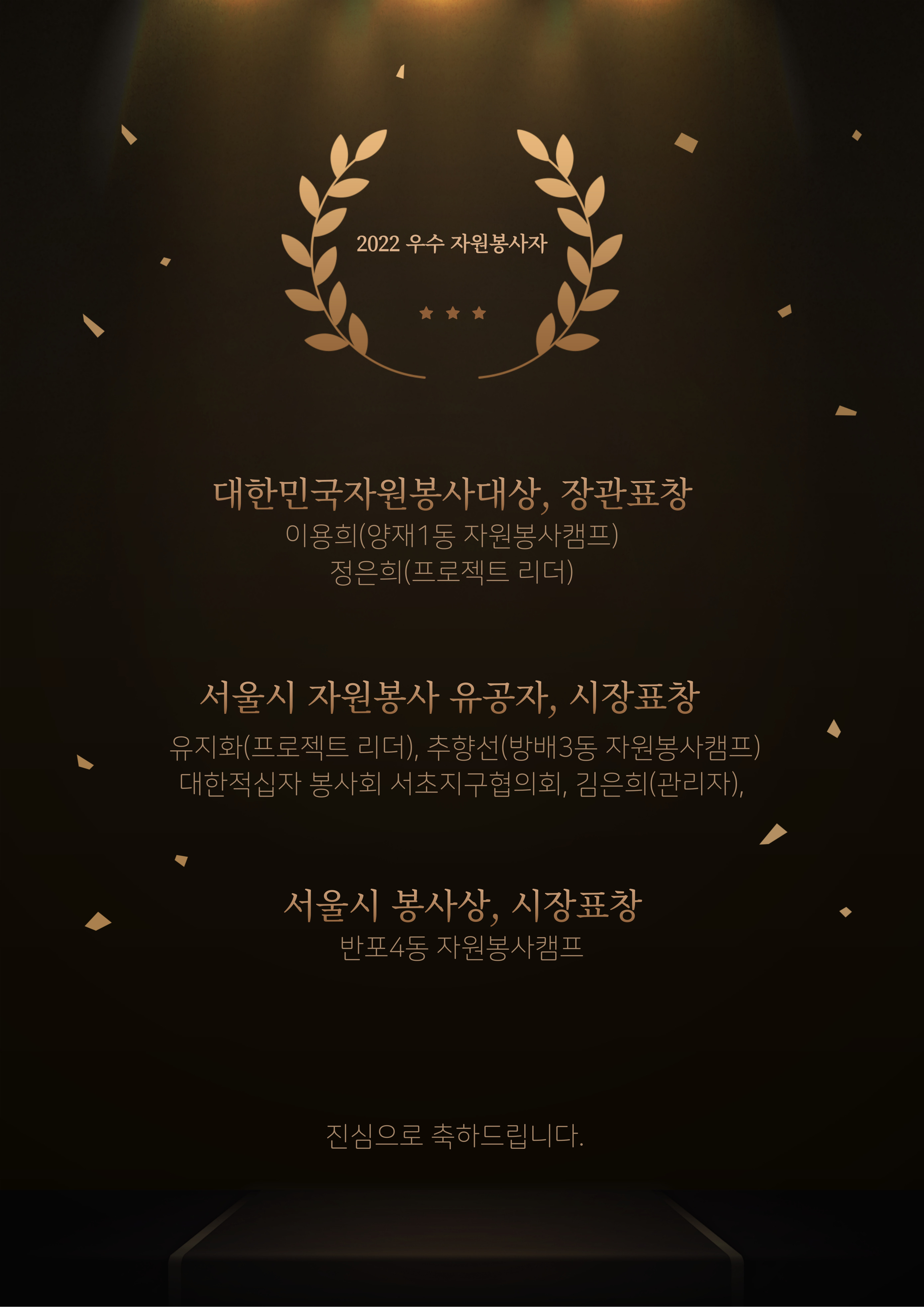 12월 5일 세계자원봉사자의 날을 기념하여, 서초구 자원봉사자들의 수상 소식을 전해드립니다.