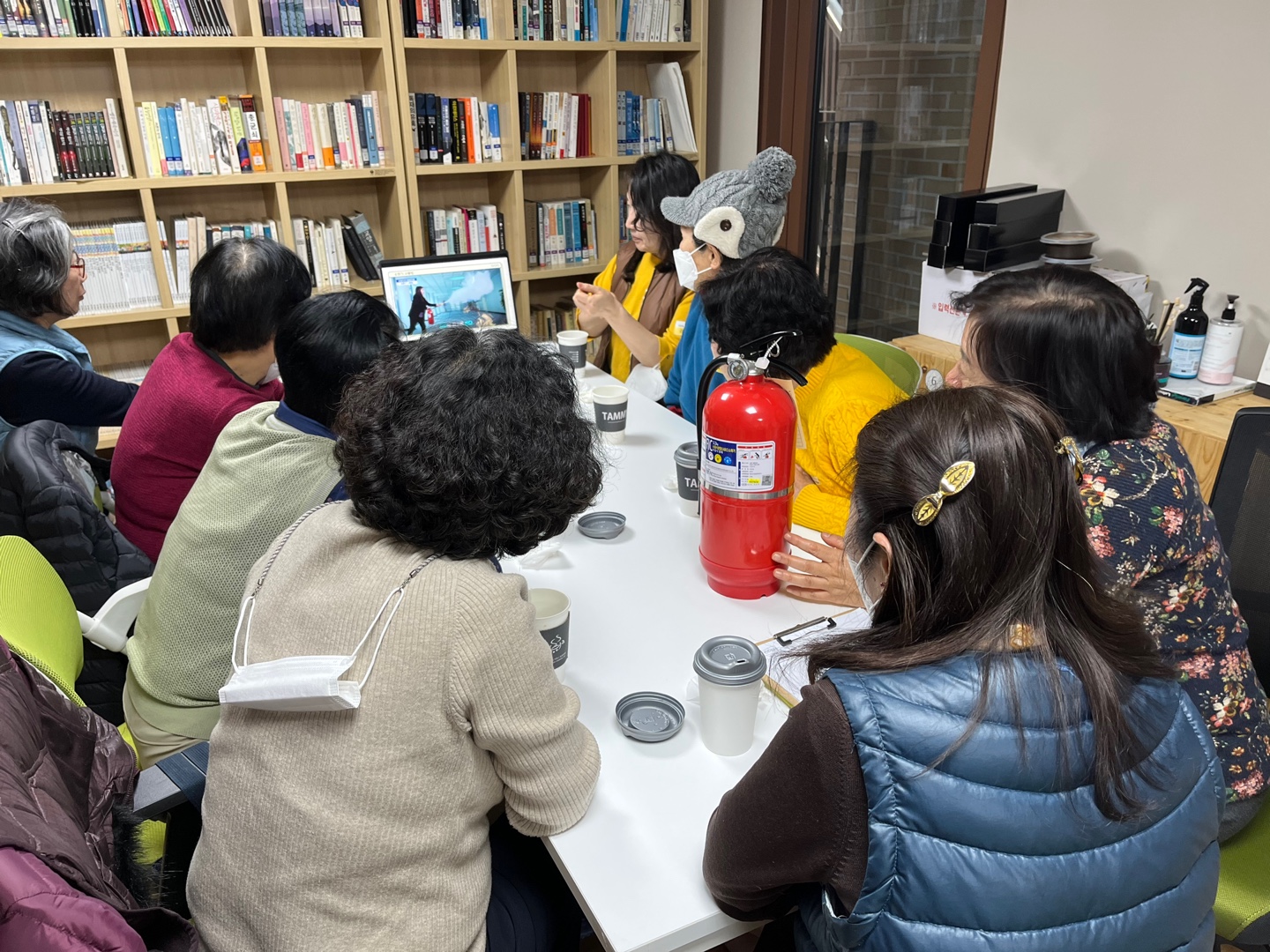 또, 센터에 소화기 위치를 알아보고,