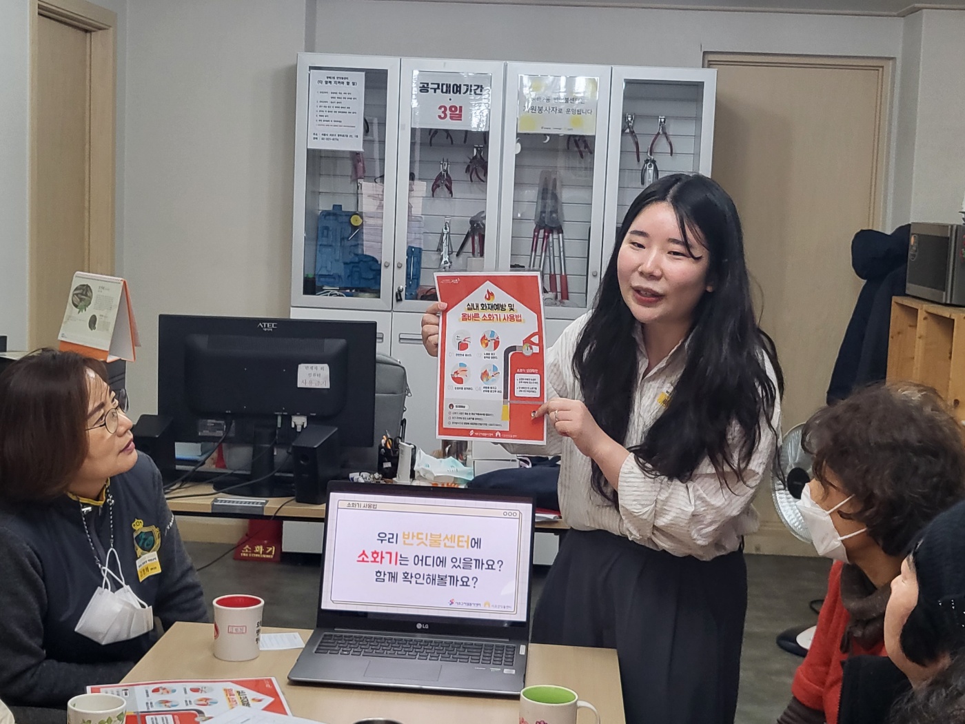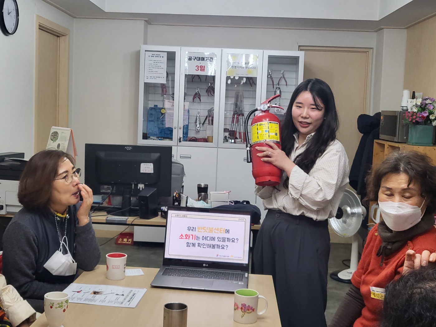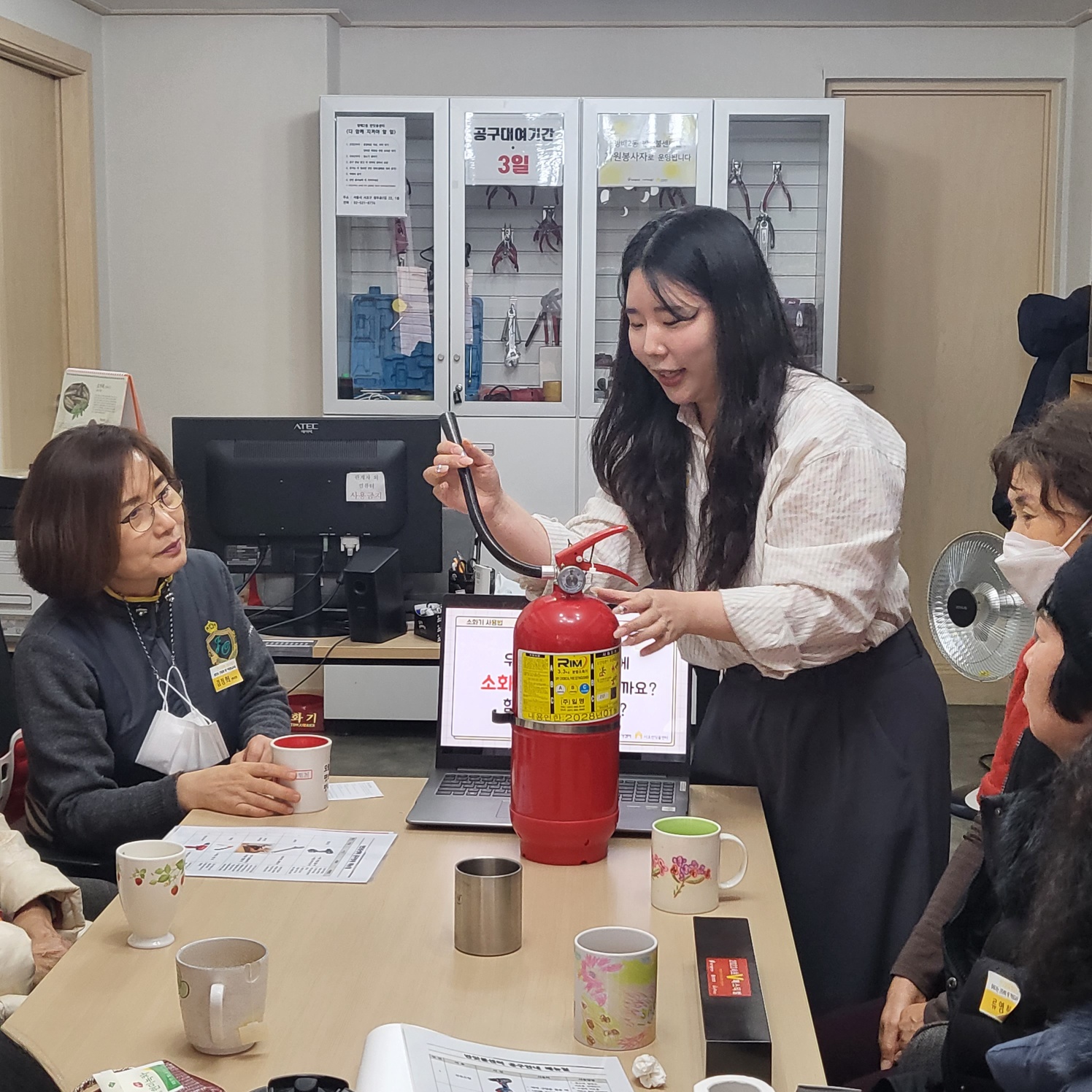 안전한 활동을 위해 공구 및 소화기 사용법에 대해 이해해보는 교육의 시간으로 진행되었습니다.