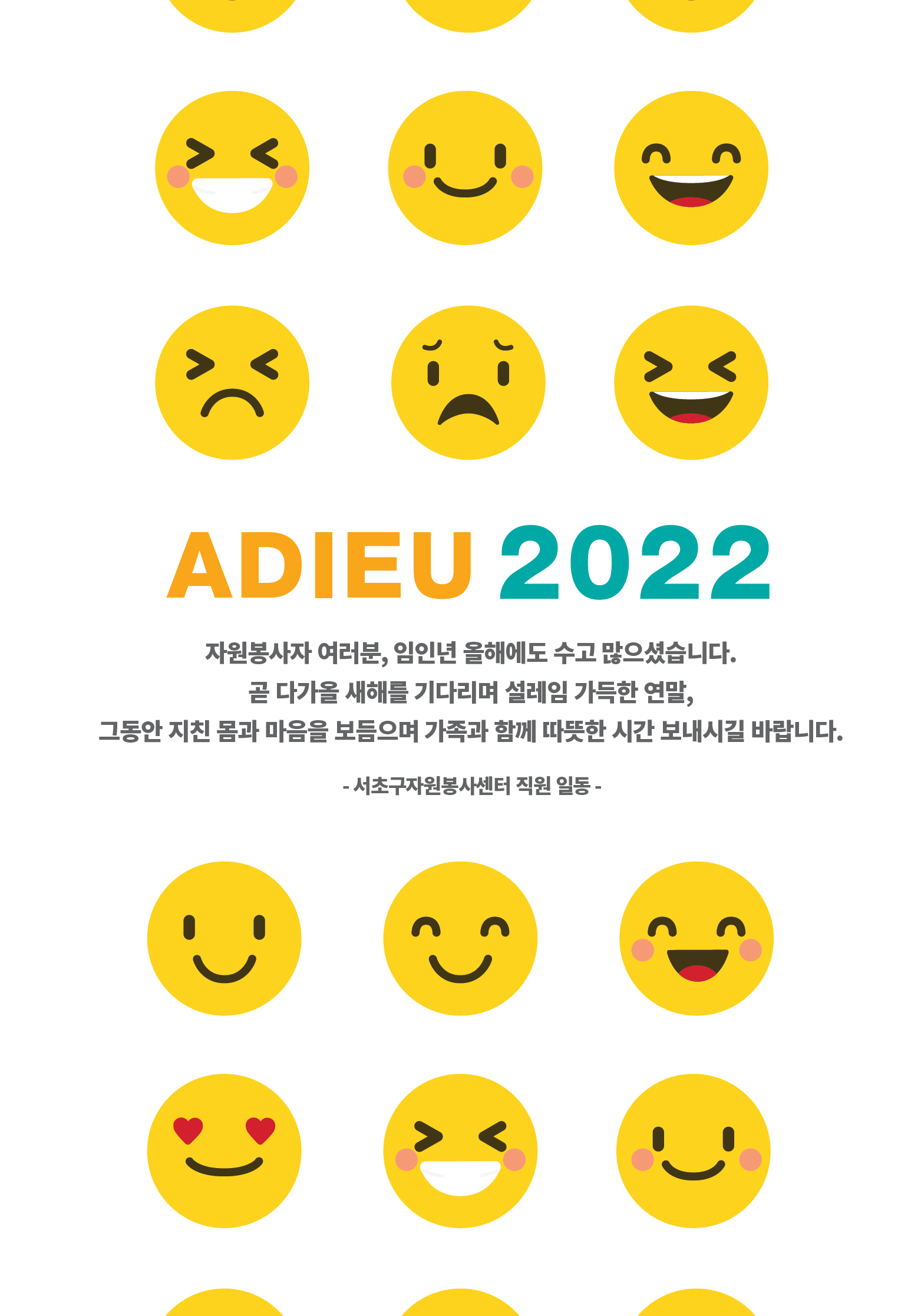 자원봉사자 여러분, 임인년 올해에도 수고 많으셨습니다.