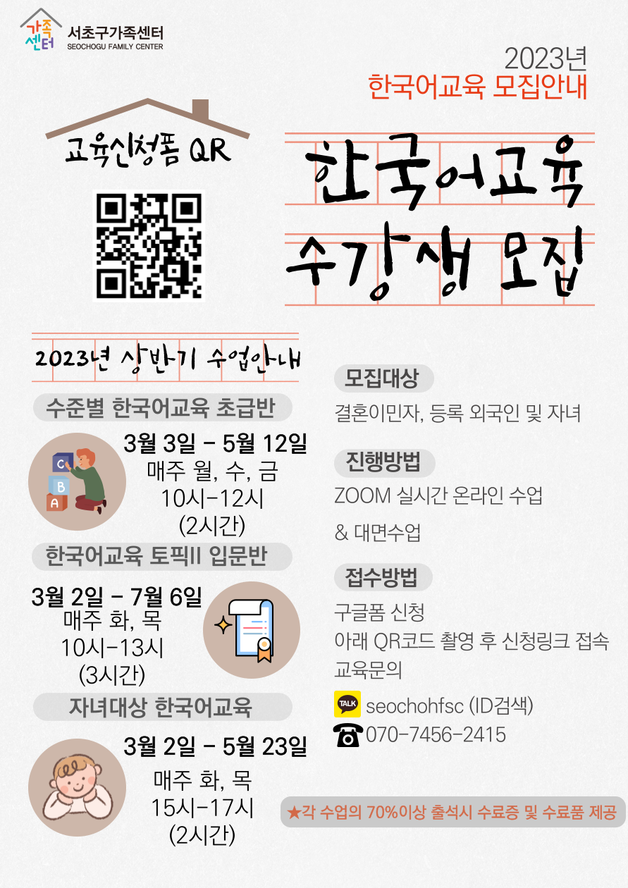 - 모집대상 : 결혼이민자, 등록 외국인 및 자녀