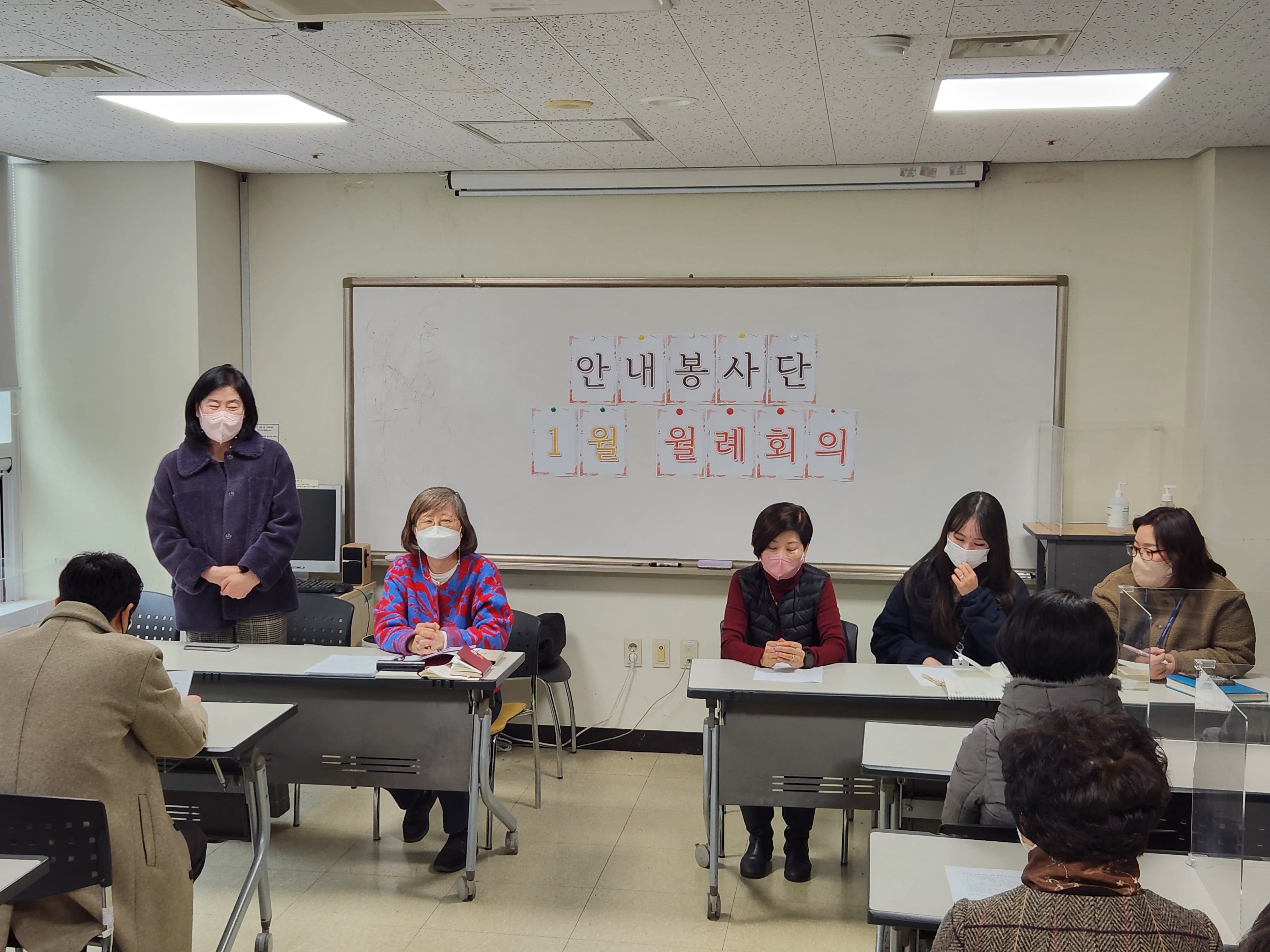 먼저 중앙노인종합복지관 안내봉사단 신년회 및 1월 월례회의 입니다. 이성희 서초구립 중앙노인종합복지관 관장님이 참여하셔서 신년 인사를 해 주셨습니다.