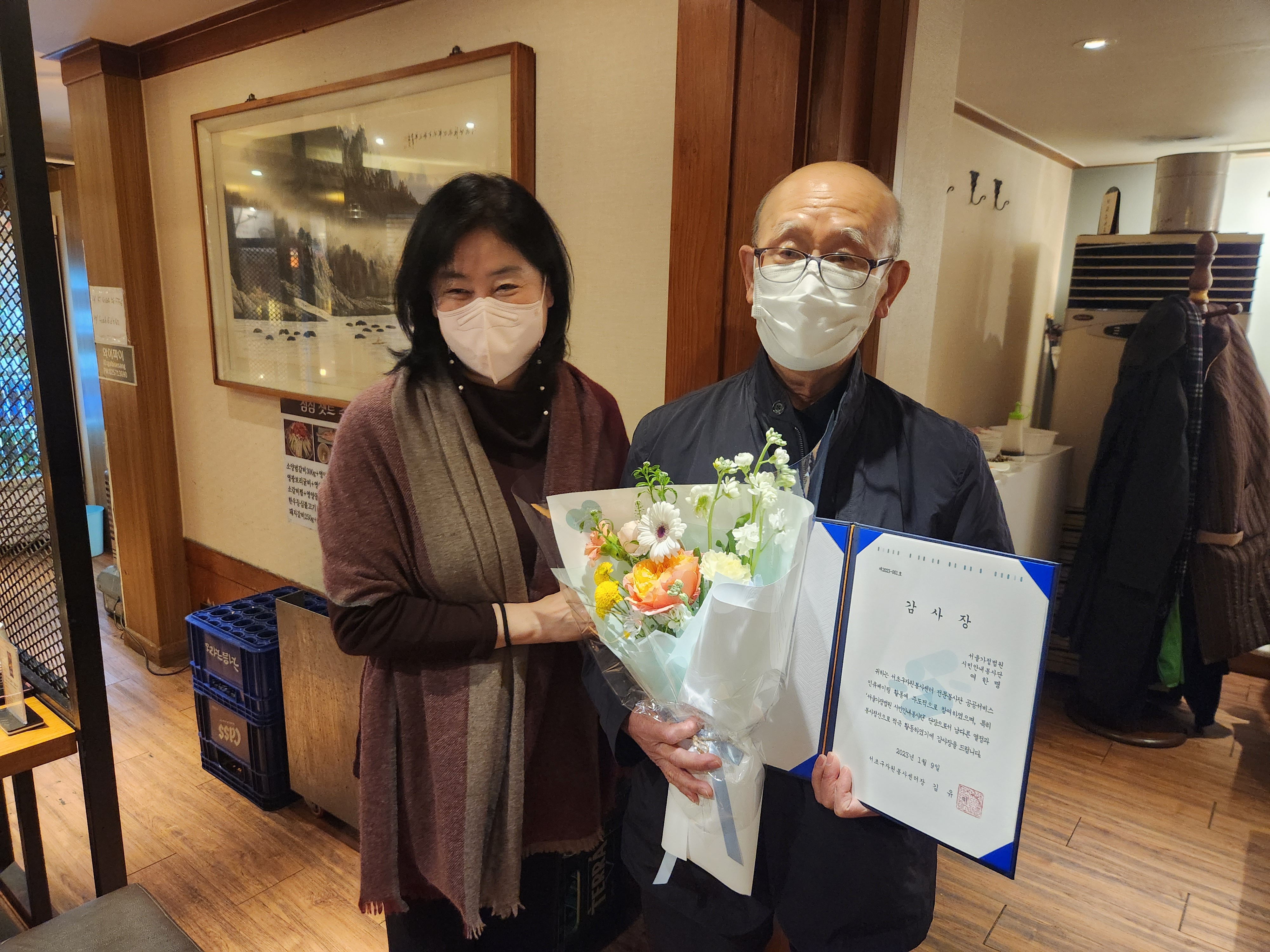 이어서 서울가정법원 안내봉사단 신년 간담회입니다. 전년도까지 단장 활동을 하시고 2002년부터 21년간 봉사의 현장을 달려오신 여한명 전 단장님이 여든이 넘은 나이로 인해 이제 봉사활동의 여정을 마치신다고 합니다.