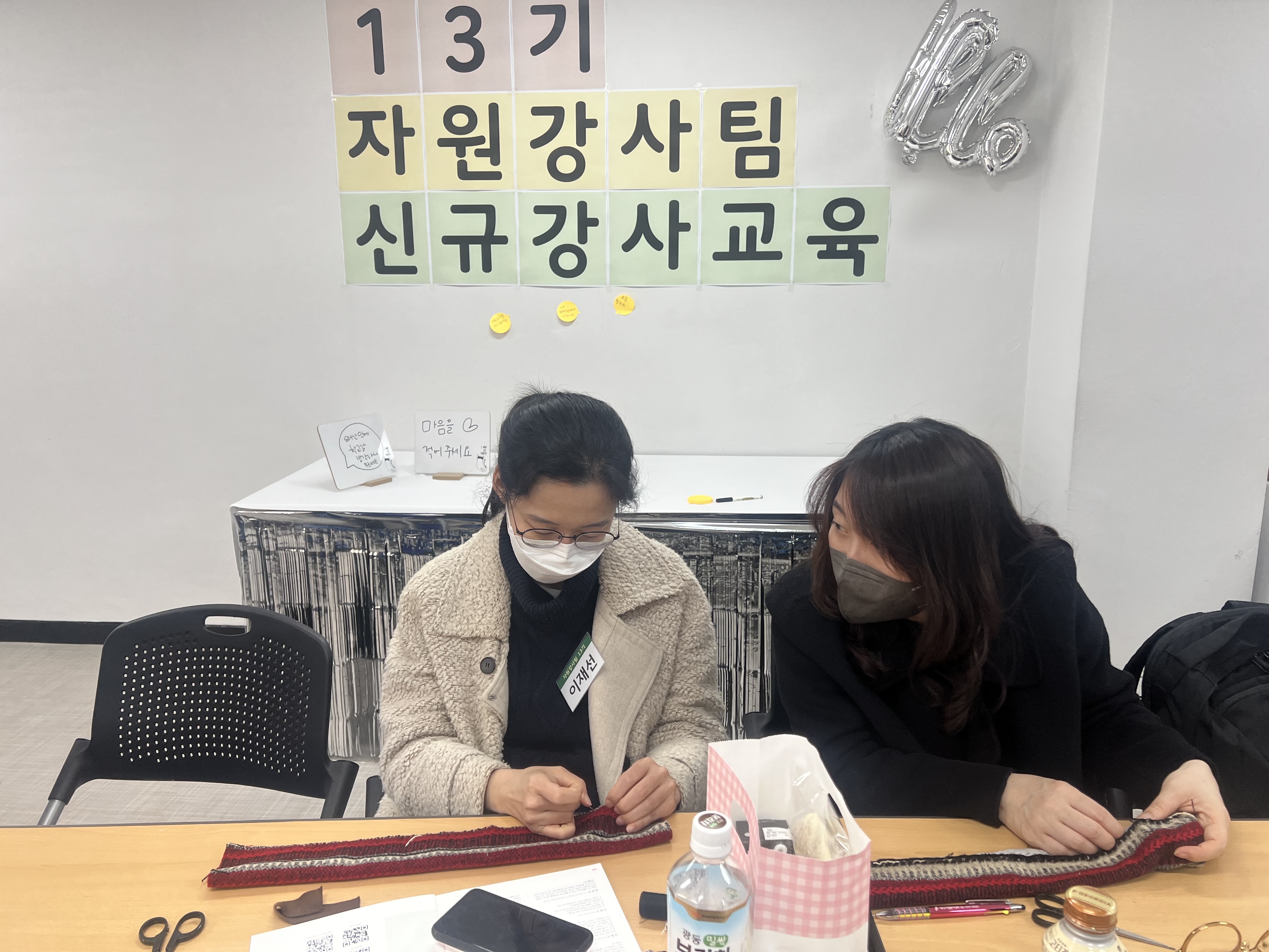 28일 진행된 교육에서는 '서초구자원봉사센터 소개'와 '자원강사팀의 역할과 기능', '11기 선배 자원강사의 자원봉사 기본교육 시연', '반려견 목도리 만들기 활동 진행' 까지 총 4교시 5시간의 빼곡한 일정으로 진행되었습니다.