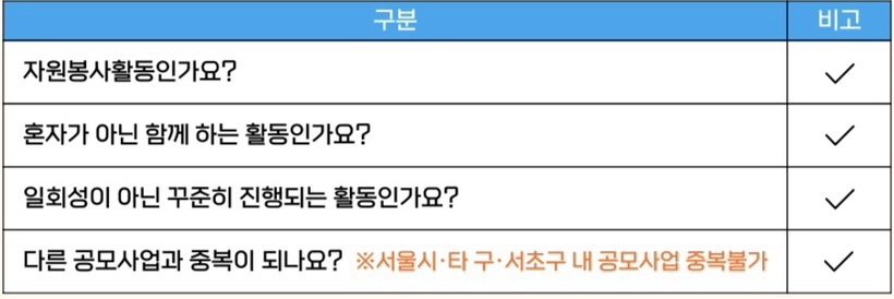 ※서울시, 타 구, 서초구 내 공모 사업에 중복으로 지원할 수 없습니다.※
