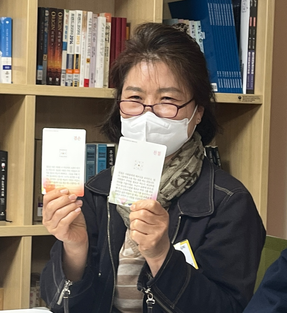 이번 상반기 봉사단 간담회는 자원봉사자 성인지감수성 교육과 버츄카드(덕담카드)를 활용하여