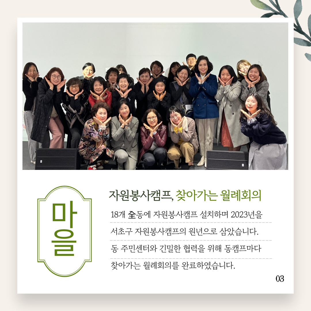 18개 全동에 자원봉사캠프 설치하며 2023년을 서초구 자원봉사캠프의 원년으로 삼았습니다.