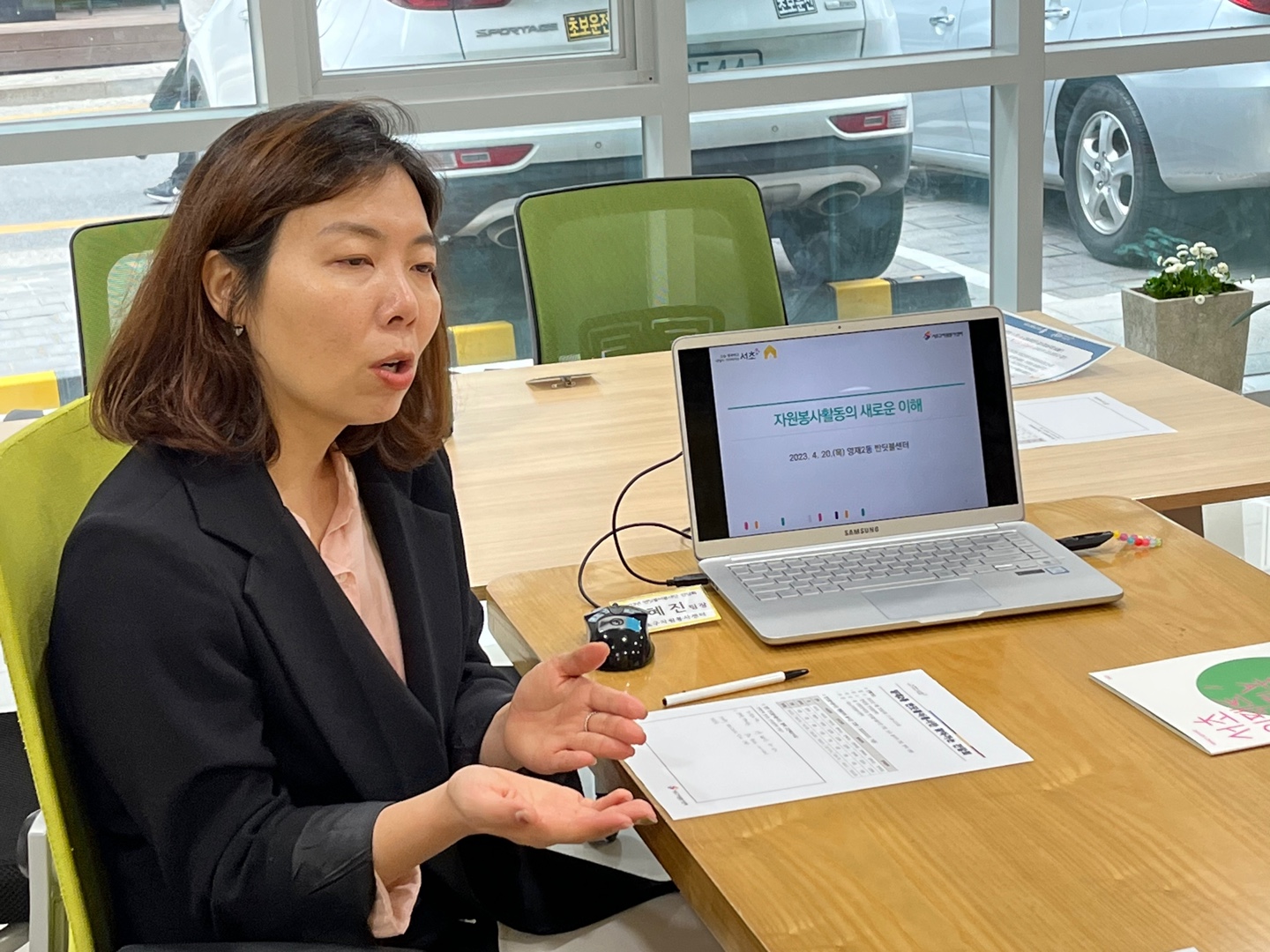파릇파릇 예쁜 꽃이 피어나는 2023년 4월, 서초구자원봉사센터는 각 반딧불센터에 찾아가 봉사단 현황을 공유하는 간담회를 진행하였습니다. 서초구에는 주택밀집지역에 아파트 관리사무소 역