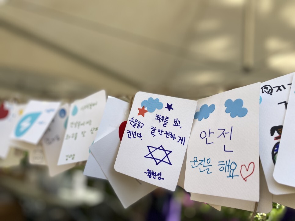 다음으로, 어린이 안전우산만들기 부스에서는 봉사자인 프로젝트리더분들이 "어린이 교통안전 이슈와 공감"진행하였는데요, 참여자들에게 어린이 교통사고를 주제로 하교시간때 어린이 교통사고율이 가장 높음을 알려주고 안전에 대해 이야기 하며 시야를 가리는 우산의 위험성을 알리는 등 참여 어린이들이 공감할 수 있는 이슈를 나누고, 어린이 빗길 안전을 지키는 투명우산 만들기 활동까지 진행되는 알찬 활동으로 전개되었습니다.