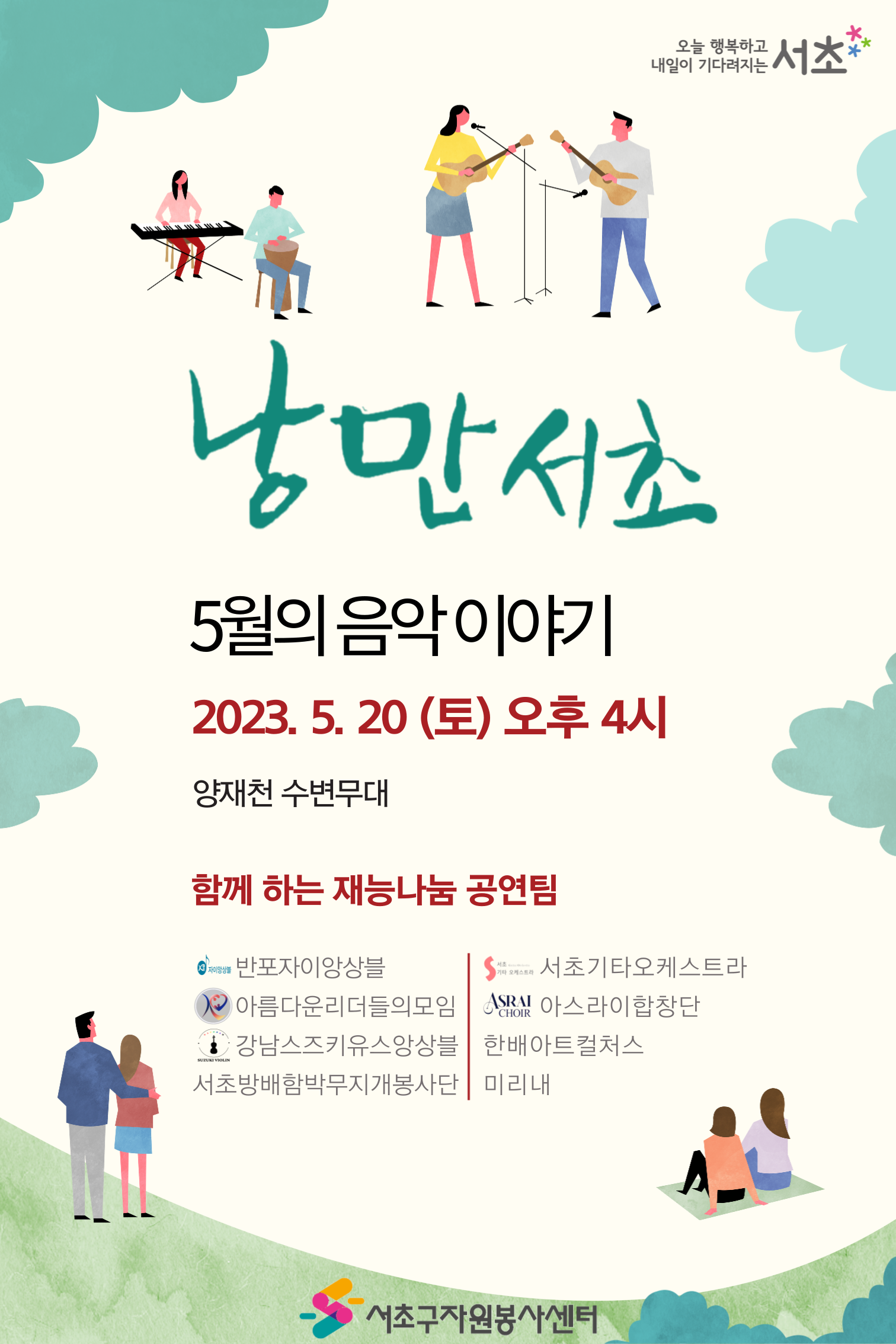 | [낭만서초]5월 양재천에서 나눈 서초만의 그 음악 이야기 (0) | 2023.05.25 |