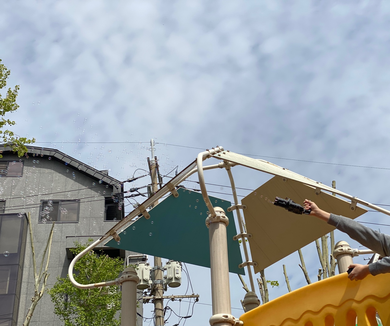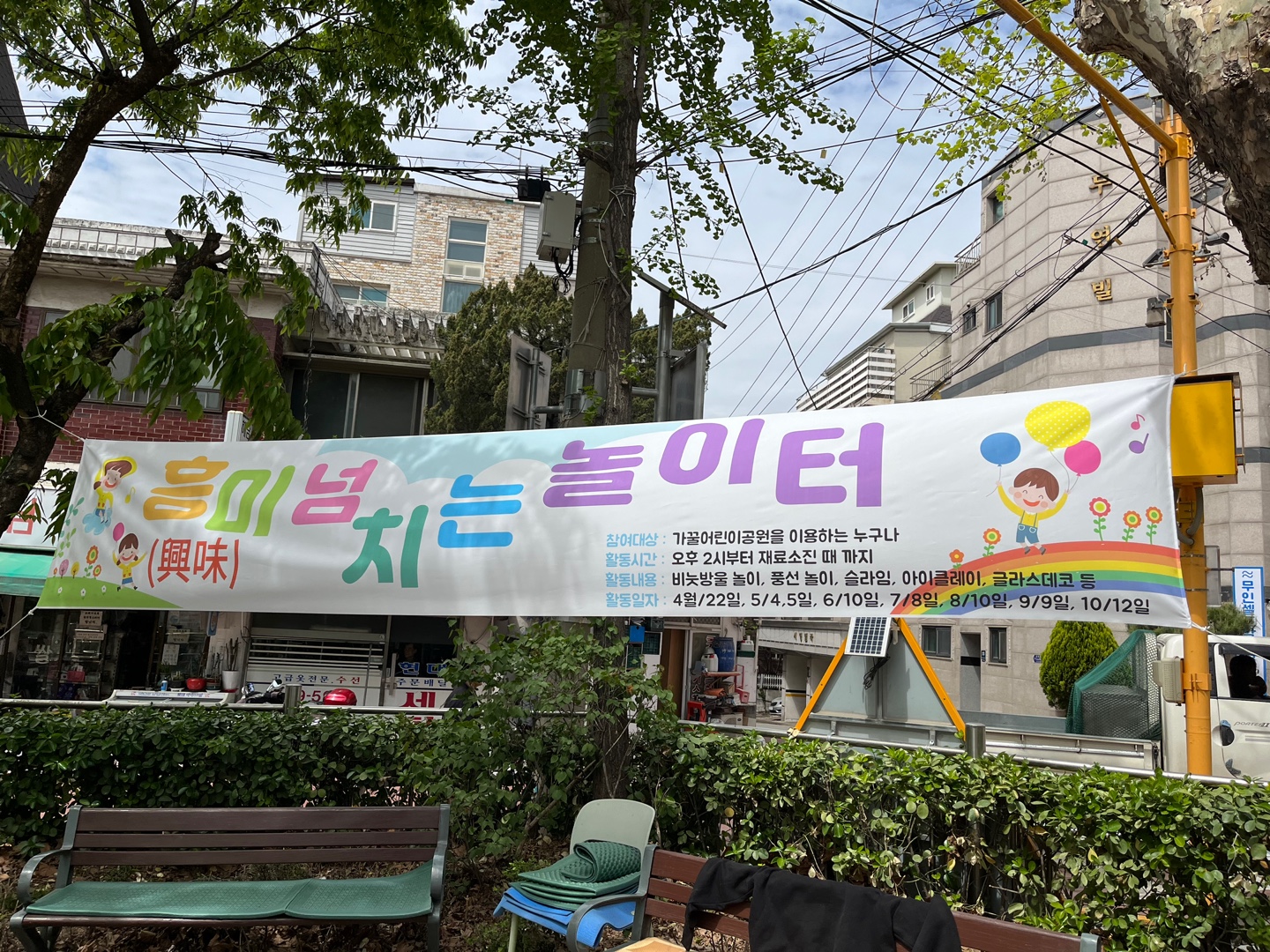 4월 22일 토요일, 가꿀어린이공원에서 비눗방울 놀이를 한다는 현수막을 보고,