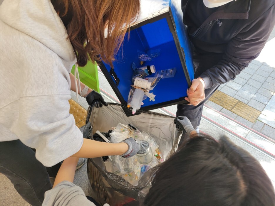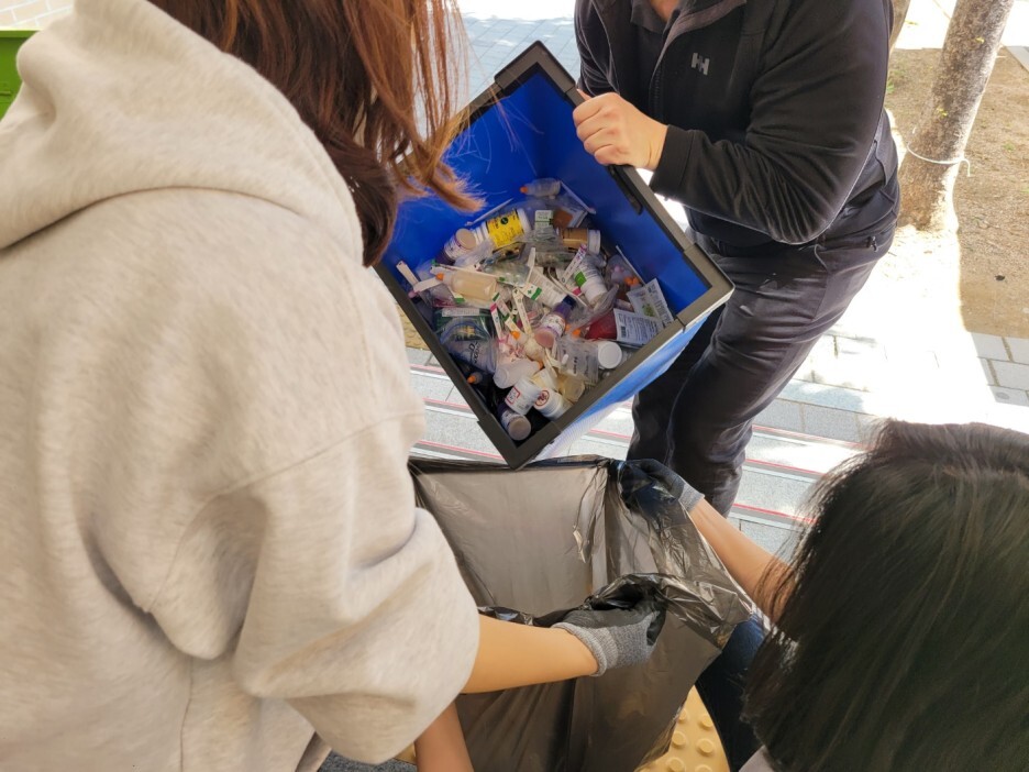 와르르 쏟아지는 폐의약품들을 보며 이 많은 폐의약품들이 모여서 강이나 바다, 산 곳곳으로 흘러들어가 생태계에까지 부정적인 영향을 미치고 악순환의 반복이 일어날 수 있다는 것을 다시금 깨닫게 만들어주는 활동이었습니다.