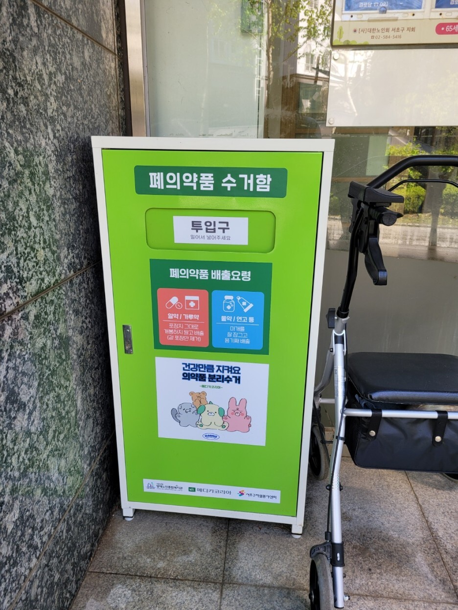 폐의약품 수거함을 서초구 관내 7개의 거점에 설치했는데요,메디카 코리아가 이번에 수거를 진행한 곳은 4개 거점입니다