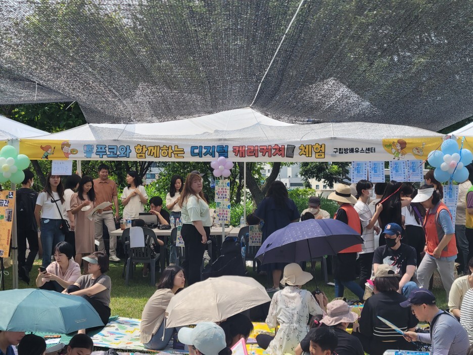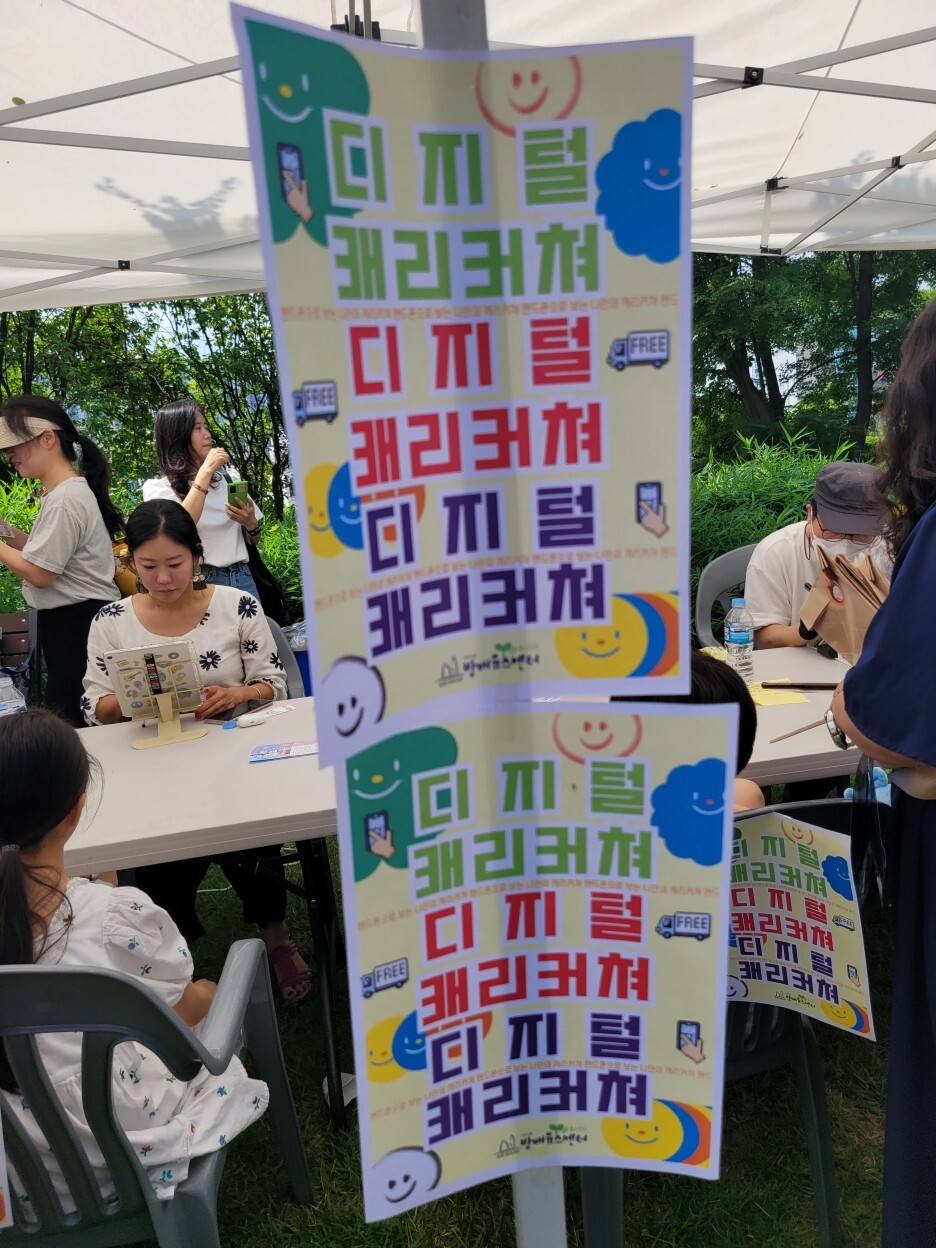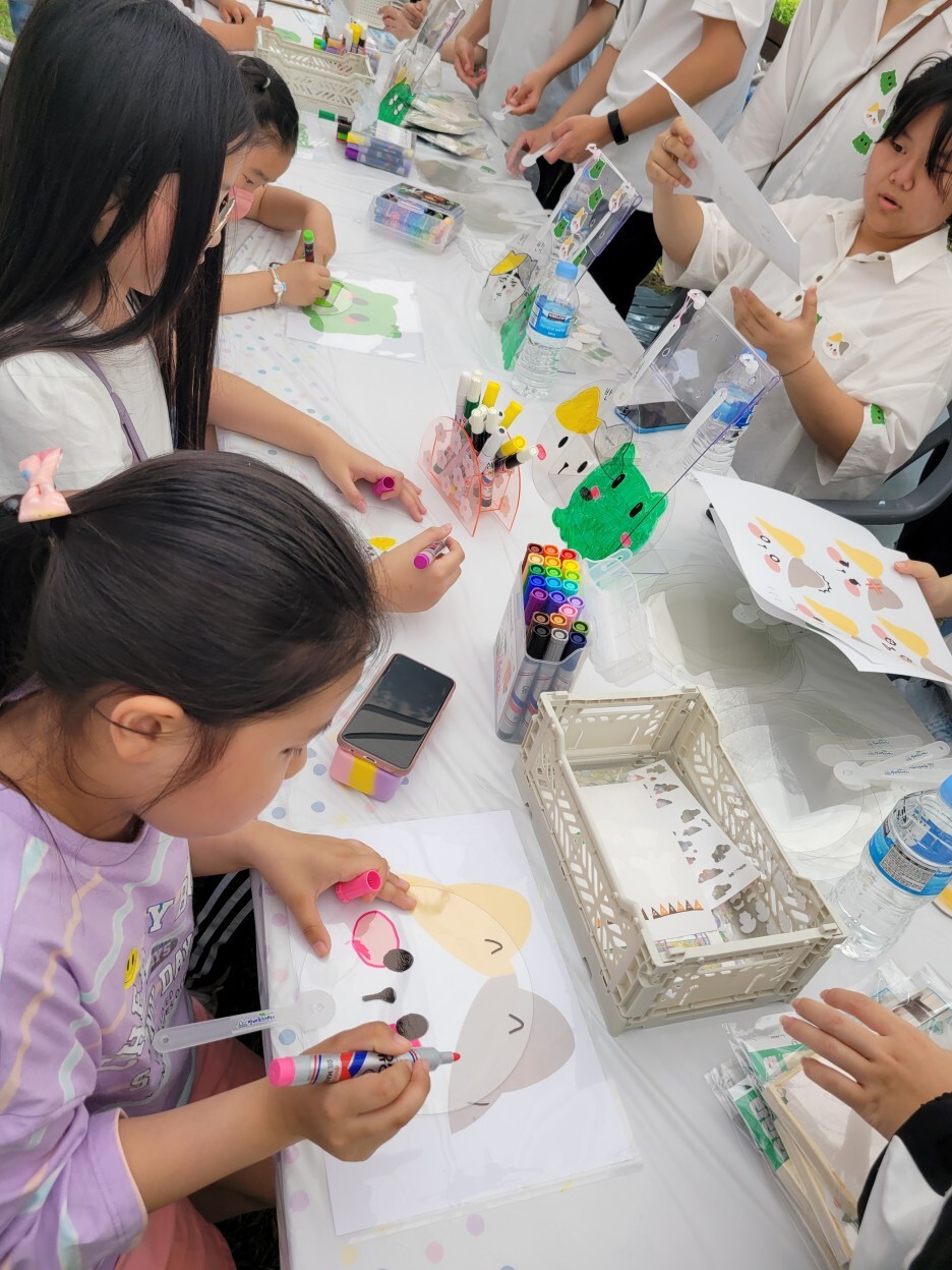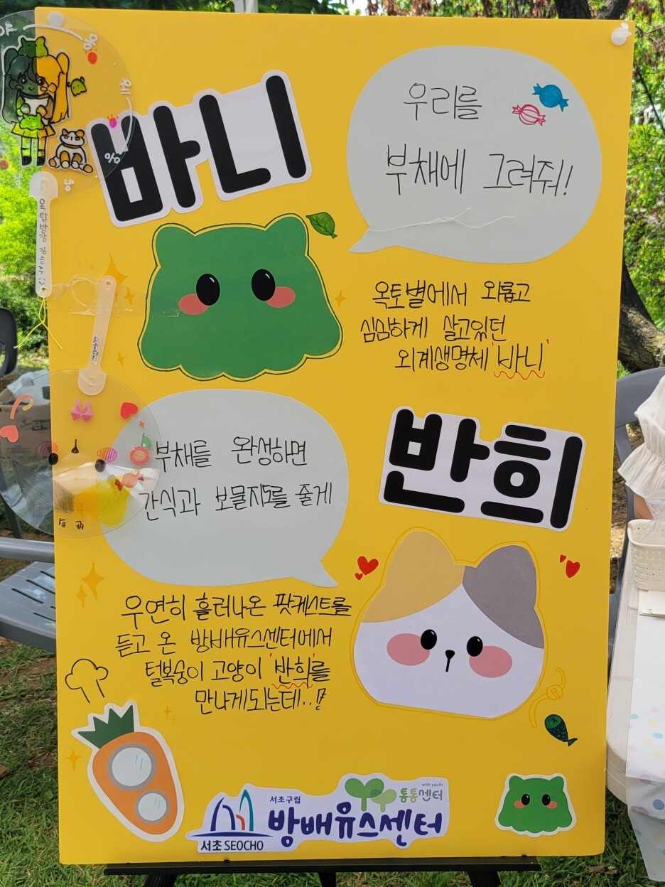 우리동네 축제에 자원봉사캠프가 빠질 수 없겠지요? 방배1동 자원봉사캠프에서는 아이들이 좋아할만한 아기자기하고 예쁜 판박이 스티커를 팔 또는 원하는 부위에 붙여주는 활동을 진행했습니다. 집중해서 스티커를 고르는 아이들의 귀여운 모습에 절로 웃음이 나왔습니다.