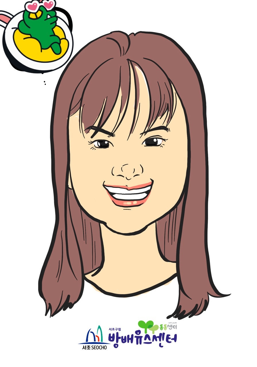 구립 방배 유스센터에서 부스 체험 활동으로 디지털 캐리커쳐를 그려주었습니다. 캐리커쳐를 받아보고싶은 마음에 저도 한번 참여해봤습니다. 제가 생각했을때 실제 제 얼굴과는 안닮은 것 같지만 눈썹 모양이나 쌍커풀이 한쪽에만 있는 자세한 묘사가 꽤 닮았다는 생각이 들었습니다.