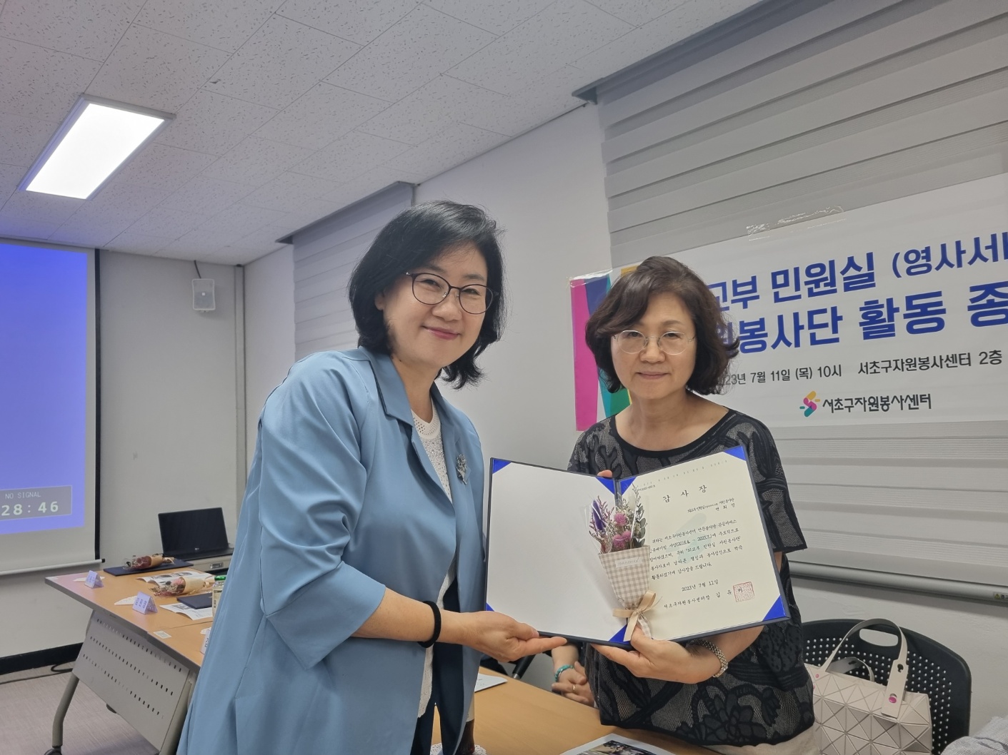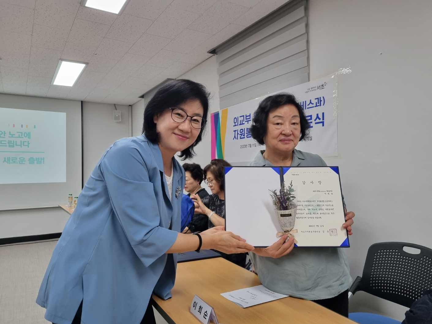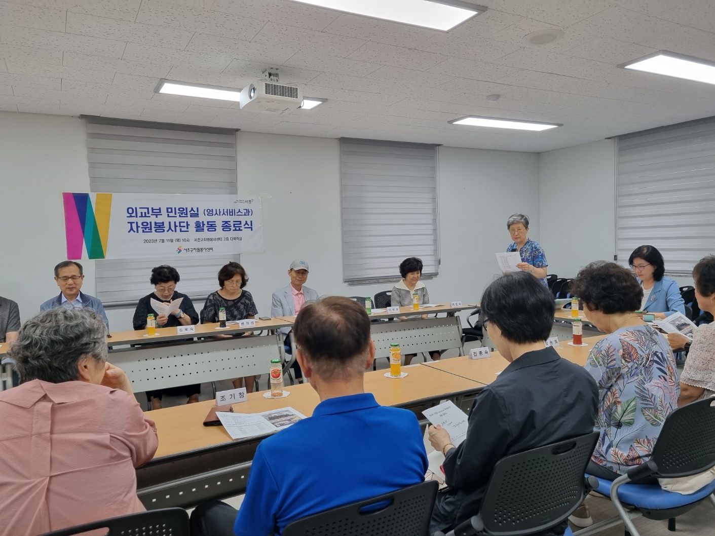 외교부 민원실 자원봉사단 활동 종료식은 서초문화예술회관 2층 다목적실에서 진행됐습니다.