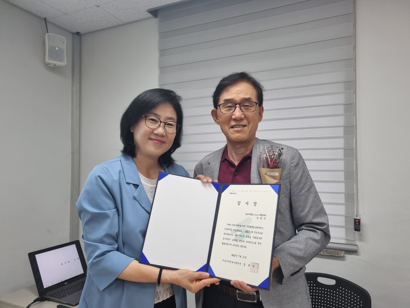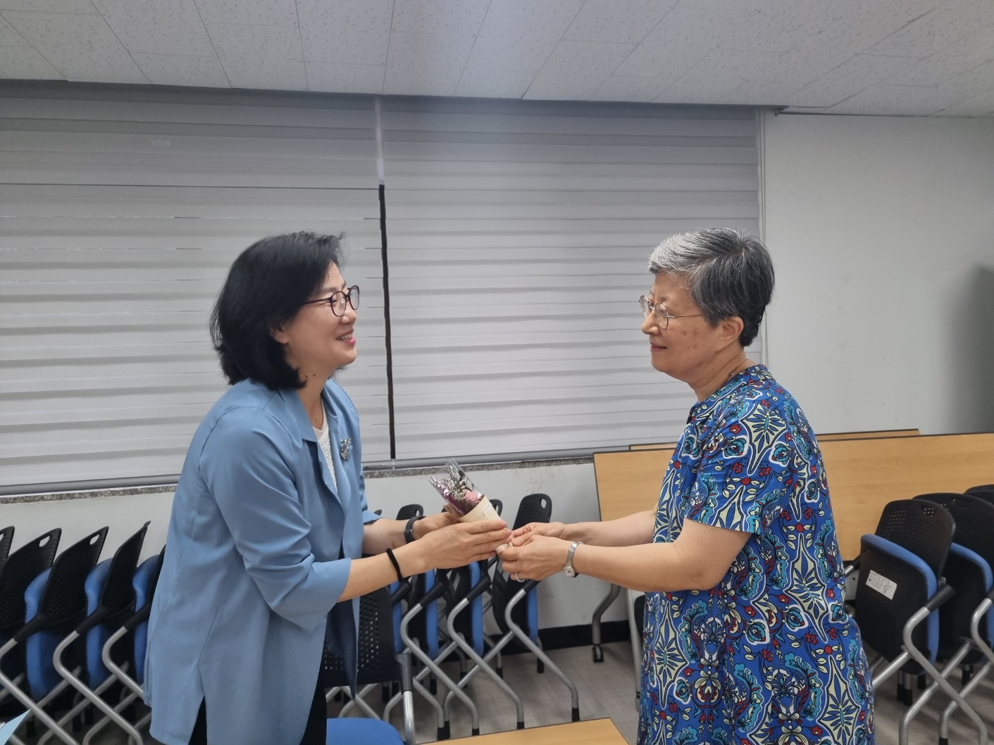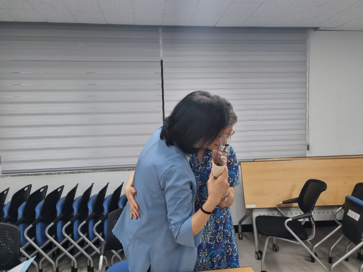 안복희 봉사자가 꽃다발을 전해드리며 포옹으로 서로의 노고를 인정하는 훈훈한 모습도 볼 수 있었습니다:)