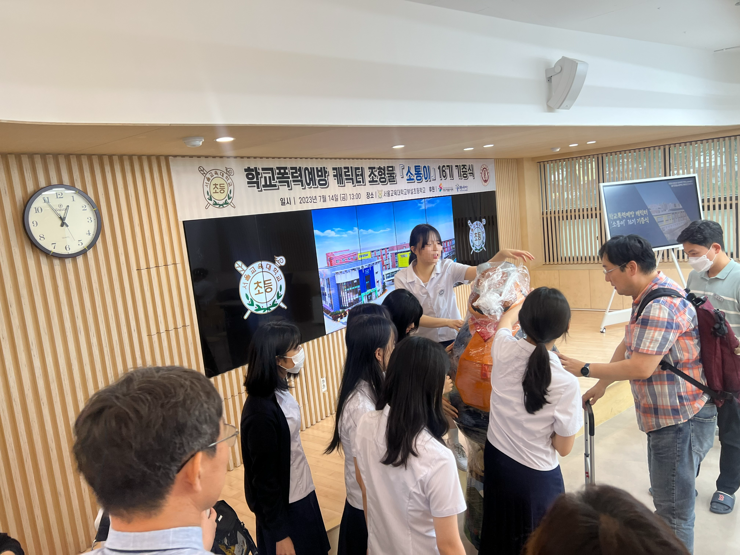 학교에서부터 소통이를 이고지고 온 동덕여고 미술반 학생들