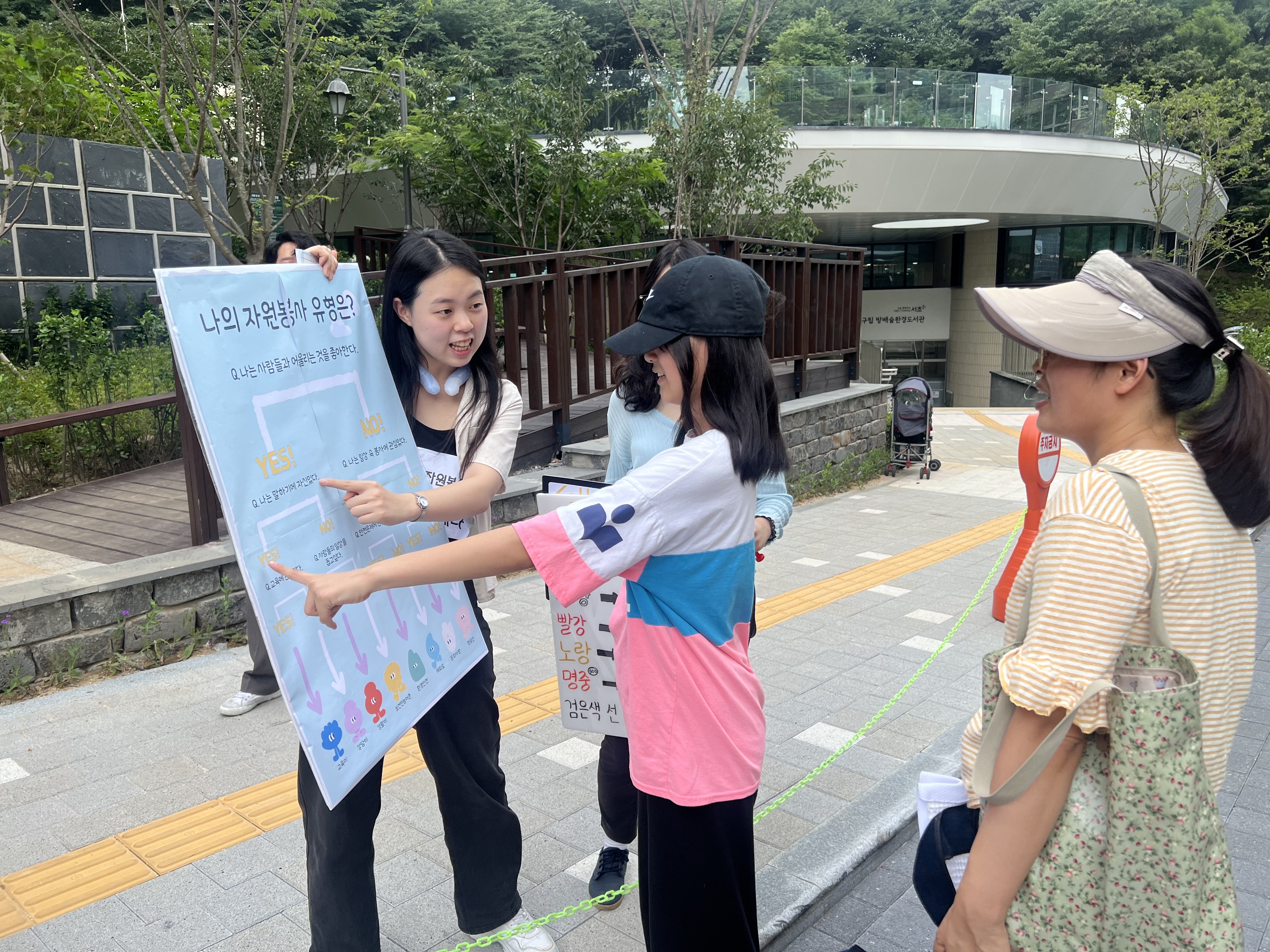 착한안테나가 직접 기획/제작한 판넬로 자원봉사활동의 경험을 질문하고 지금 자신과 잘 맞는 자원봉사가 무엇인지 확인하는 과정을 통해 참여한 시민들이 자원봉사활동에 대해 다시한번 생각하길 바라는 마음으로 진행하게 되었습니다.