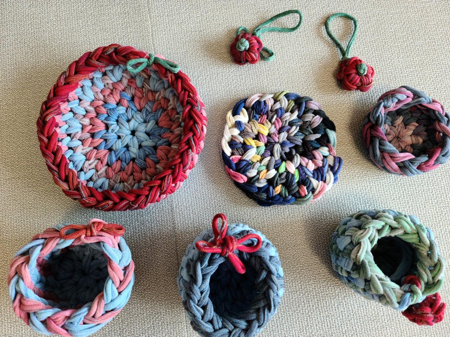 양말목으로 만든 다양한 제품들을 들고 다같이 찰칵!