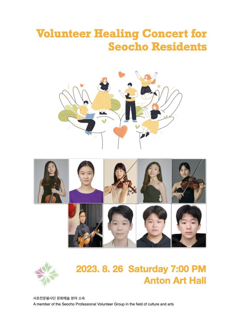혹시라도 이 팀의 연주가 궁금하신 봉사자분들이 계신다면 8월 26일 저녁 7시에 서초구 내 안톤홀에서 자체적인 힐링콘서트를 진행한다고 하니 참고하시기를 바랍니다.