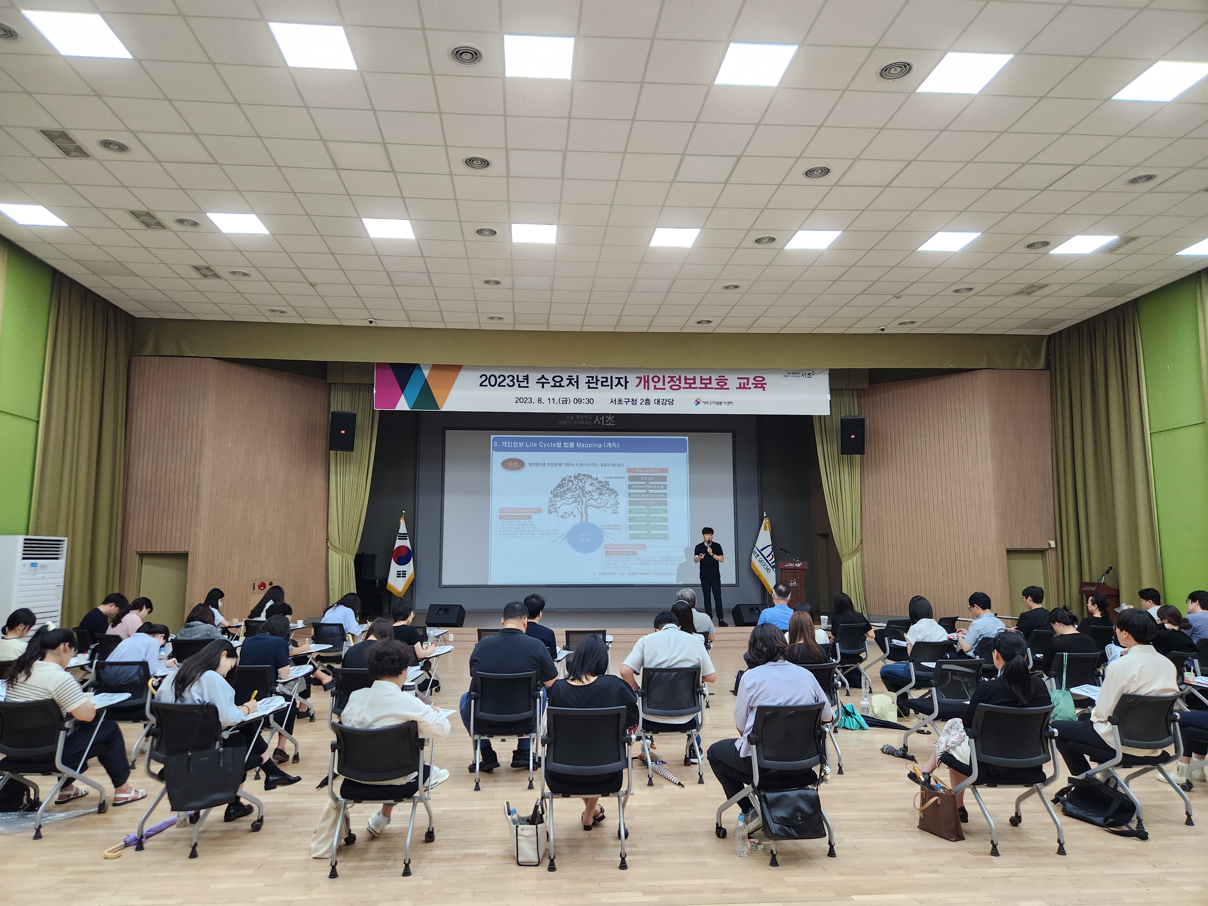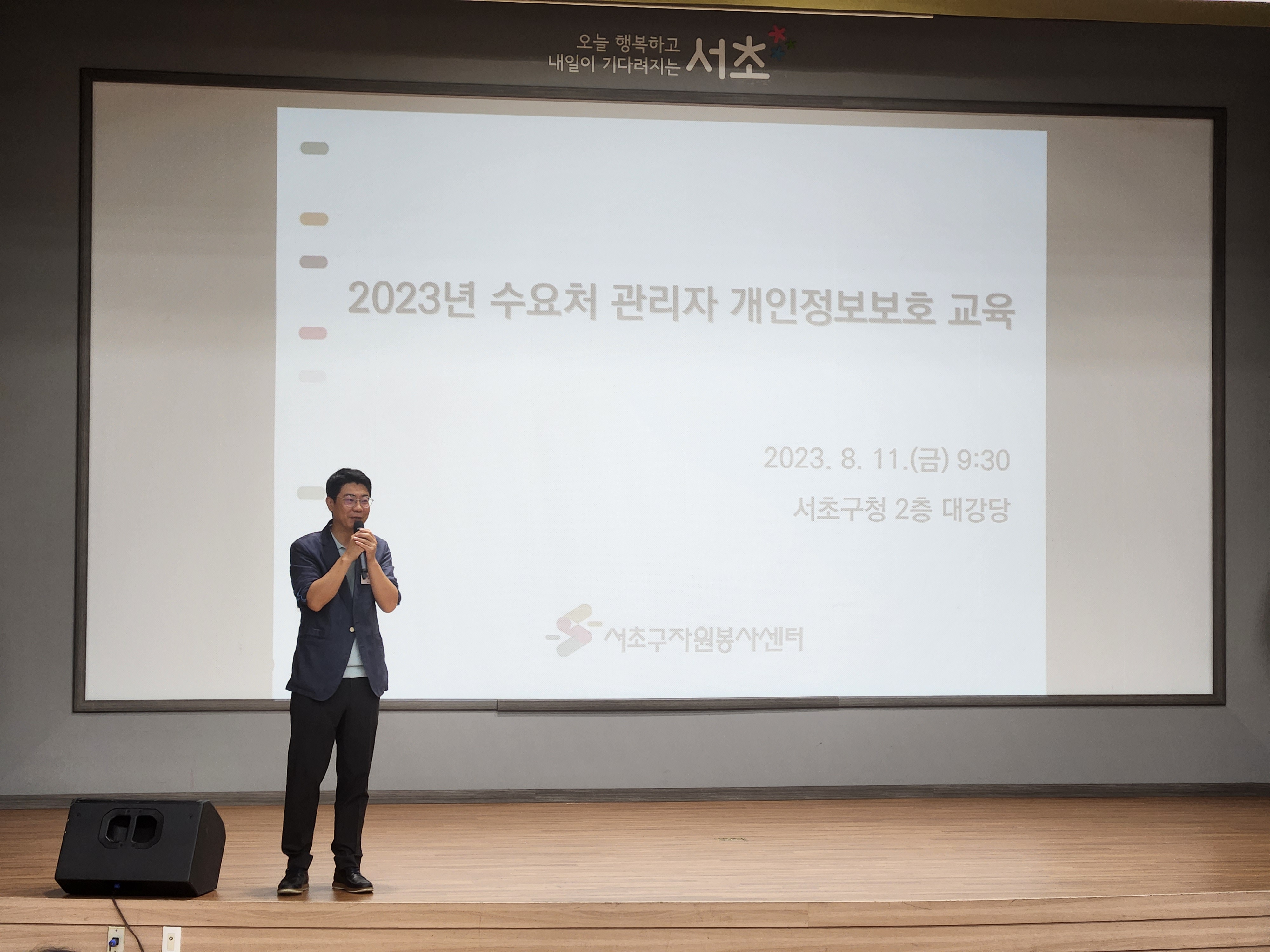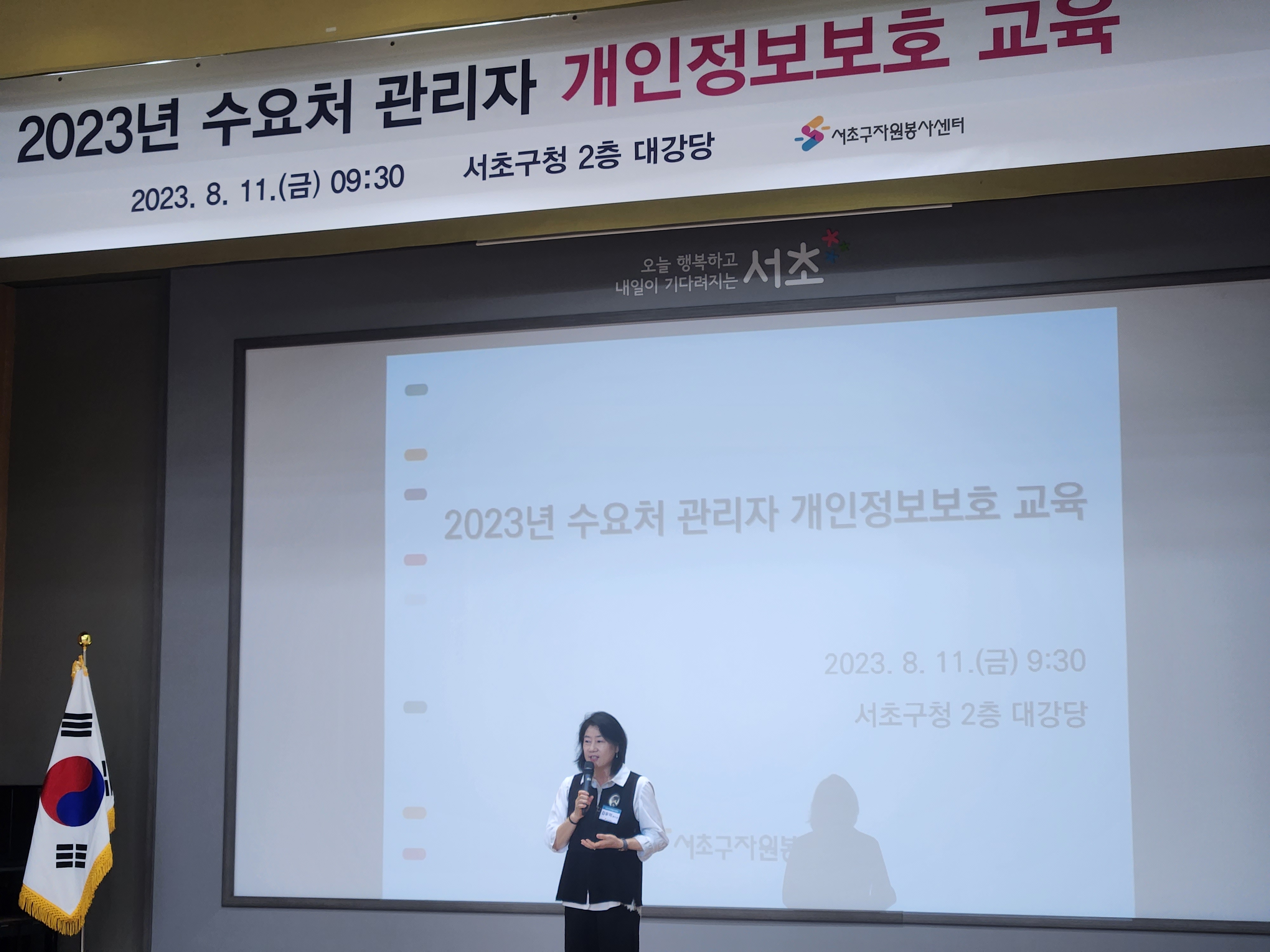 8월 11일, 서초구자원봉사센터에서는 수요처 관리자 50여 명을 대상으로 개인정보보호 교육을 진행했습니다.