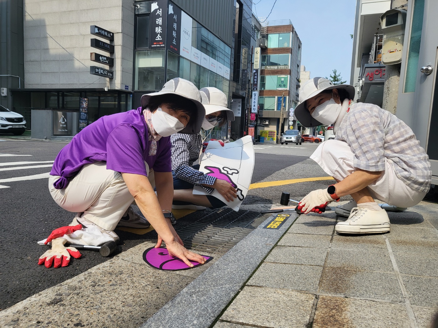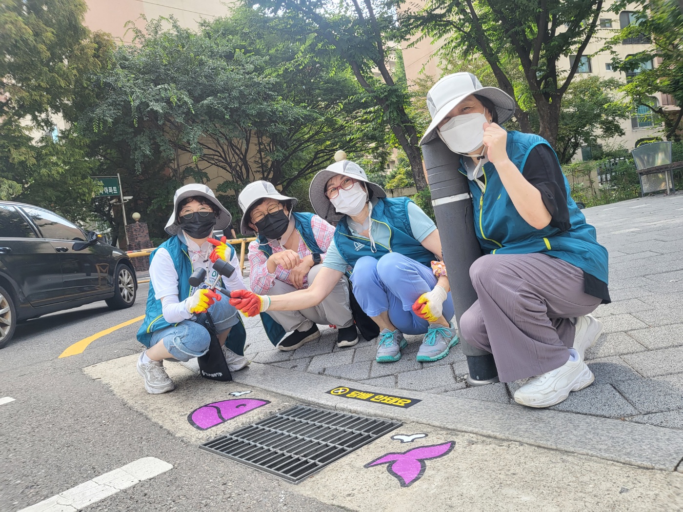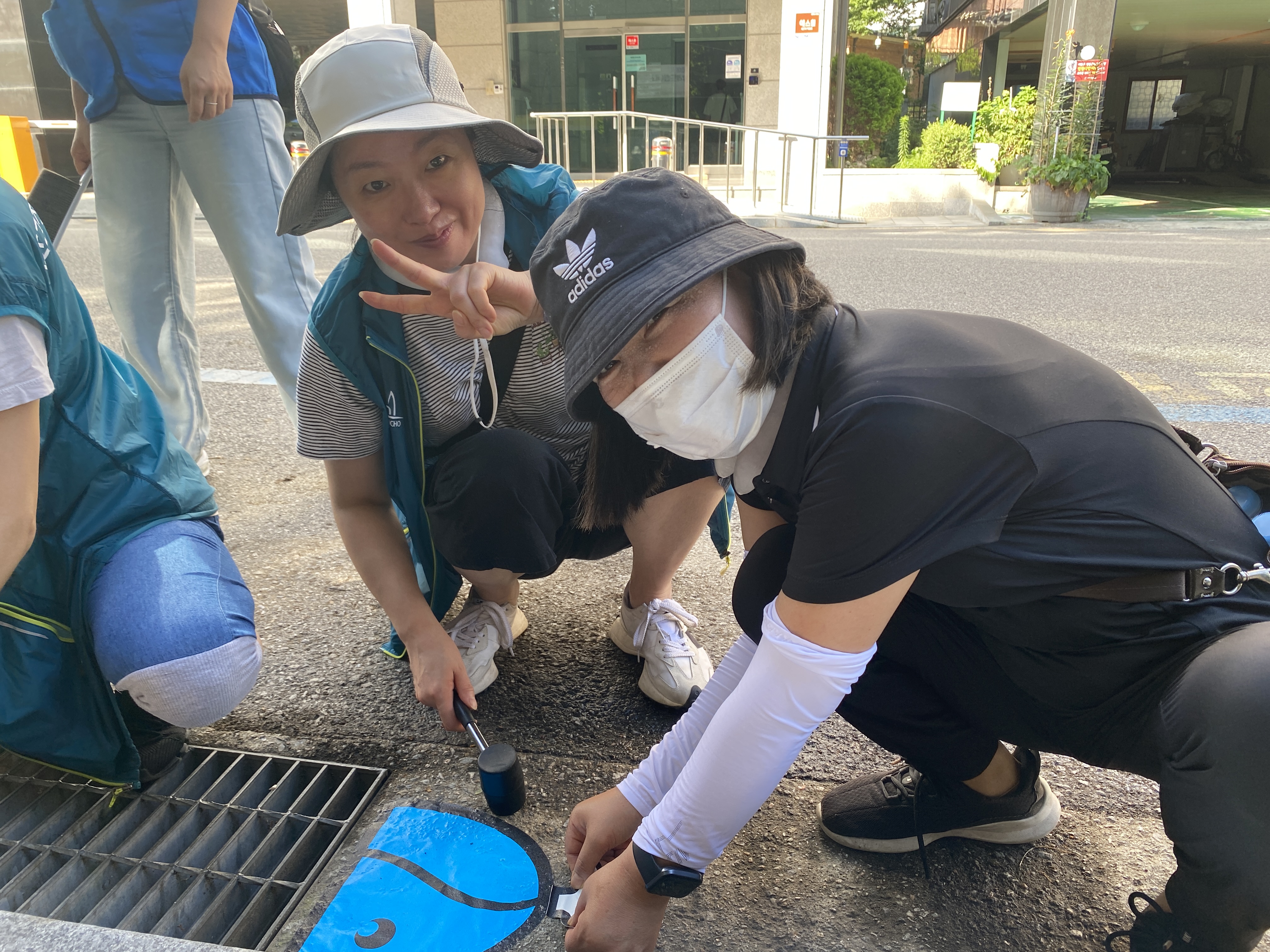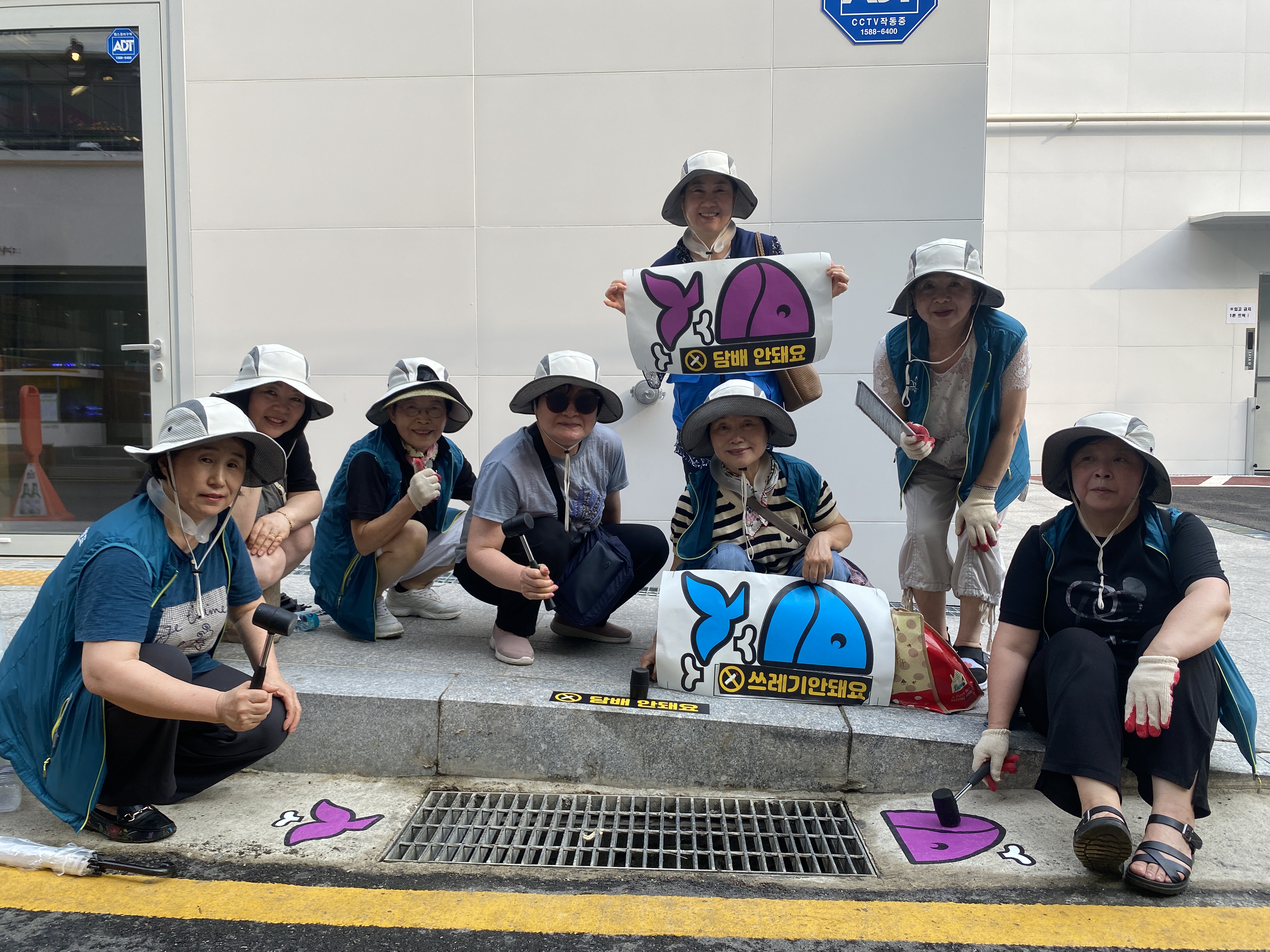 모두 더운 날씨에 힘들었지만 예쁘게 완성된 빗물받이를 보고 보람을 느꼈던 활동이었던 것 같습니다! 마지막으로 열심히 고생하셨던 자원봉사자분들과 빗물받이와의 단체사진으로 캠페인 활동이 마무리되었습니다.