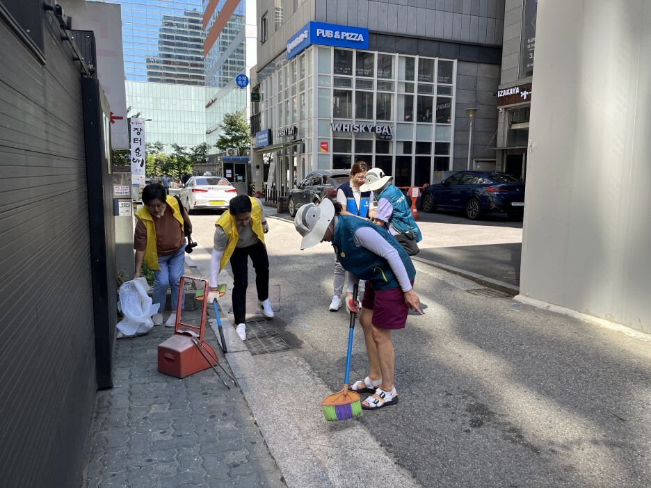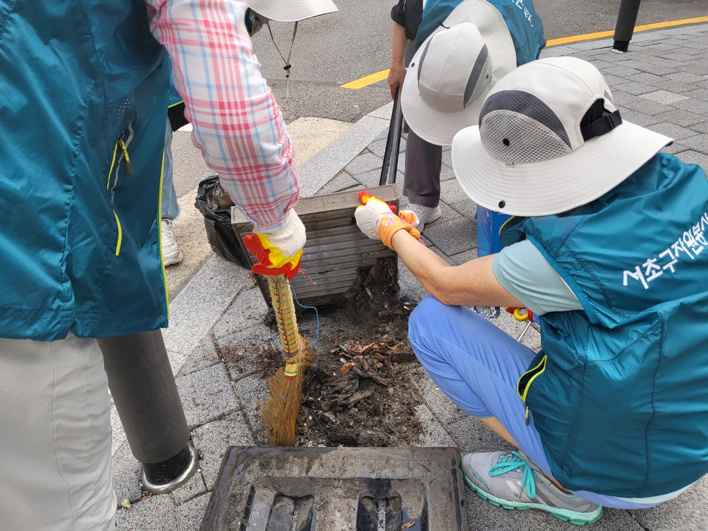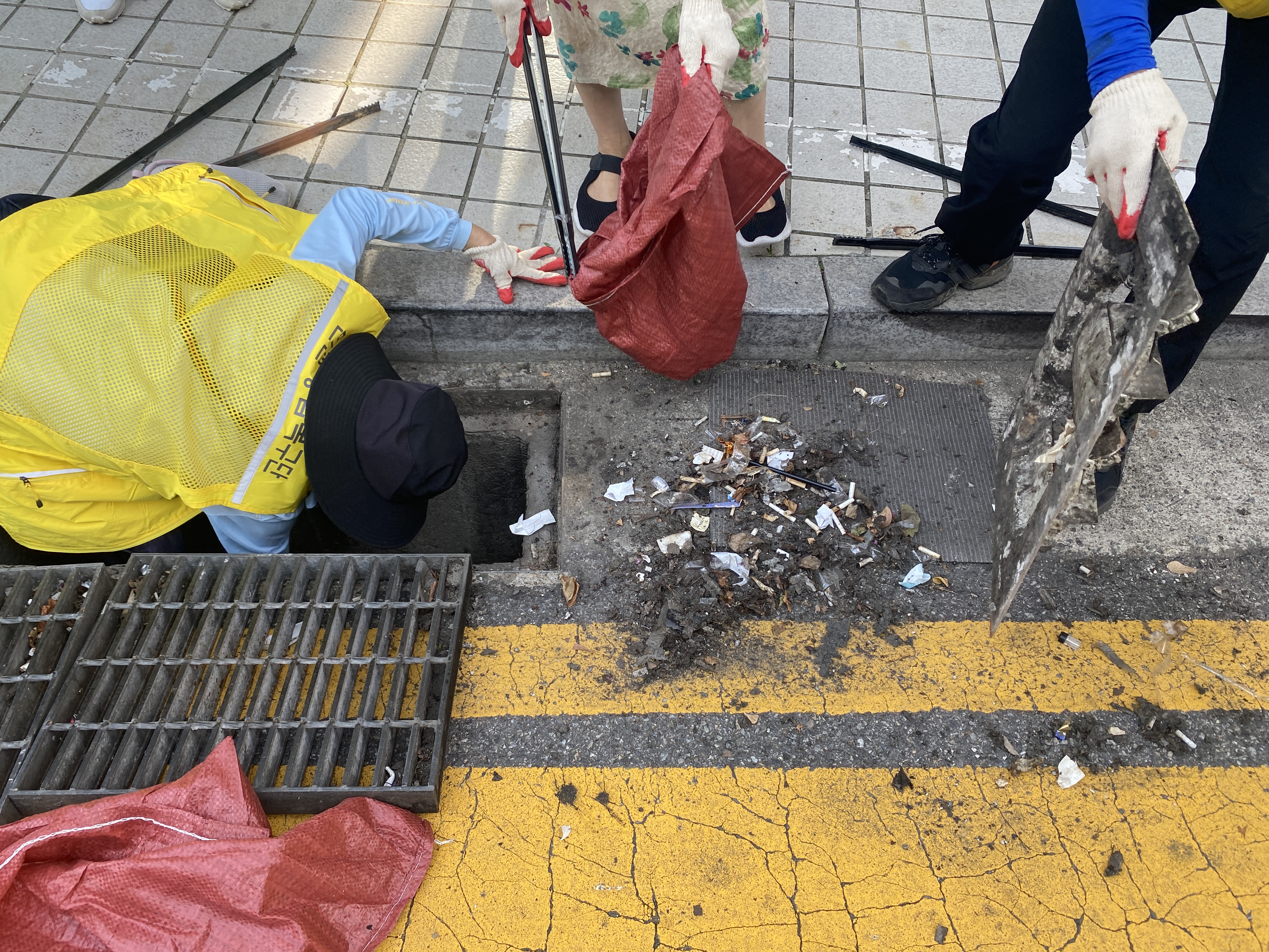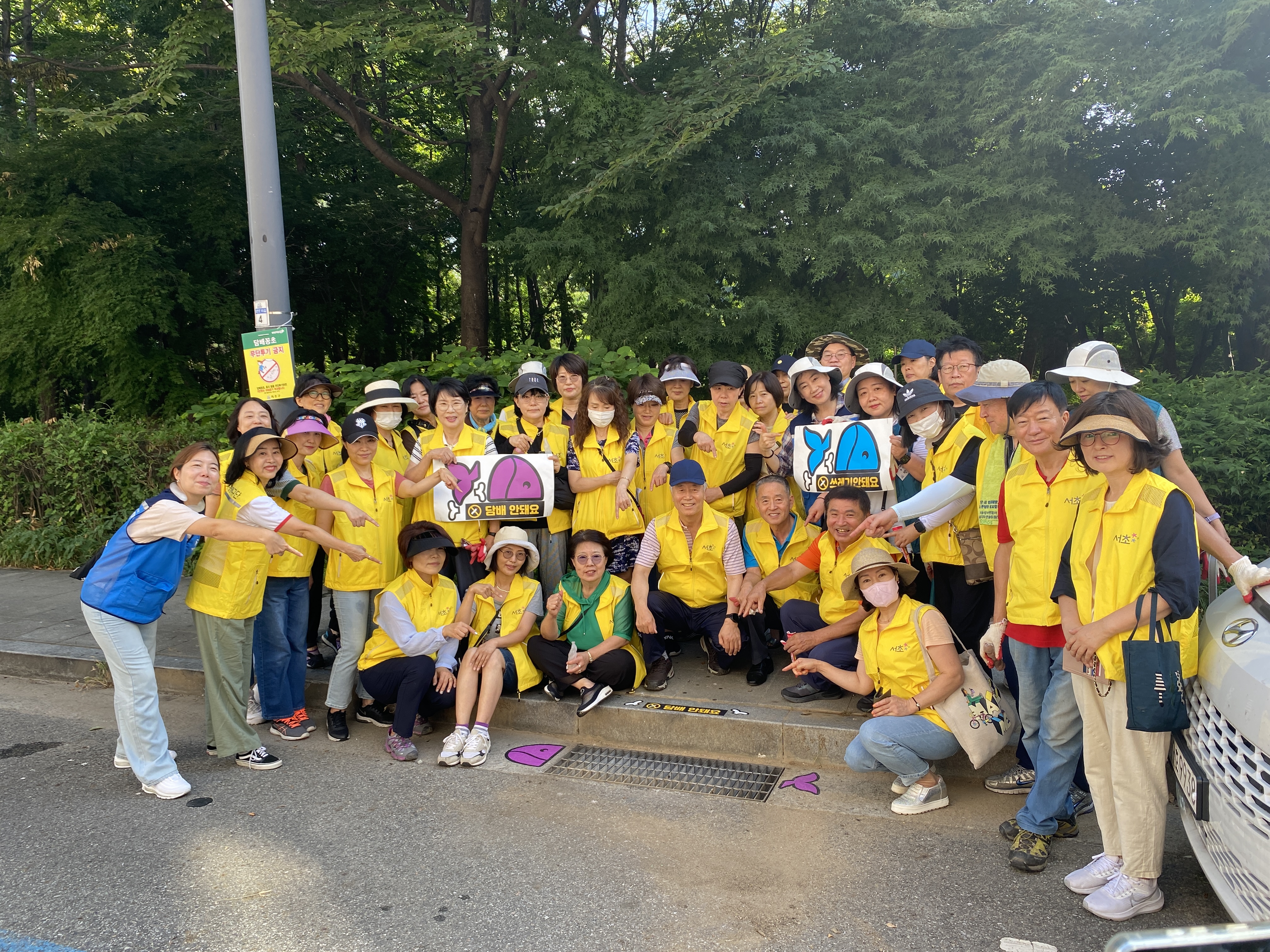 따라서 서초2동 자원봉사캠프에서는 이 빗물받이를 정화하고 담배꽁초를 버리지 말자는 스티커를 부착하는 캠페인을 기획했다고 합니다. 36도에 육박하는 매우 무더운 날씨였음에도 불구하고, 캠페인에 참여하기 위해 캠프장님을 비롯한 많은 자원봉사자분들께서 나와주셨습니다.