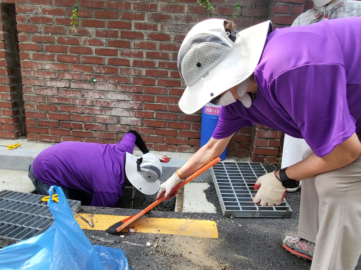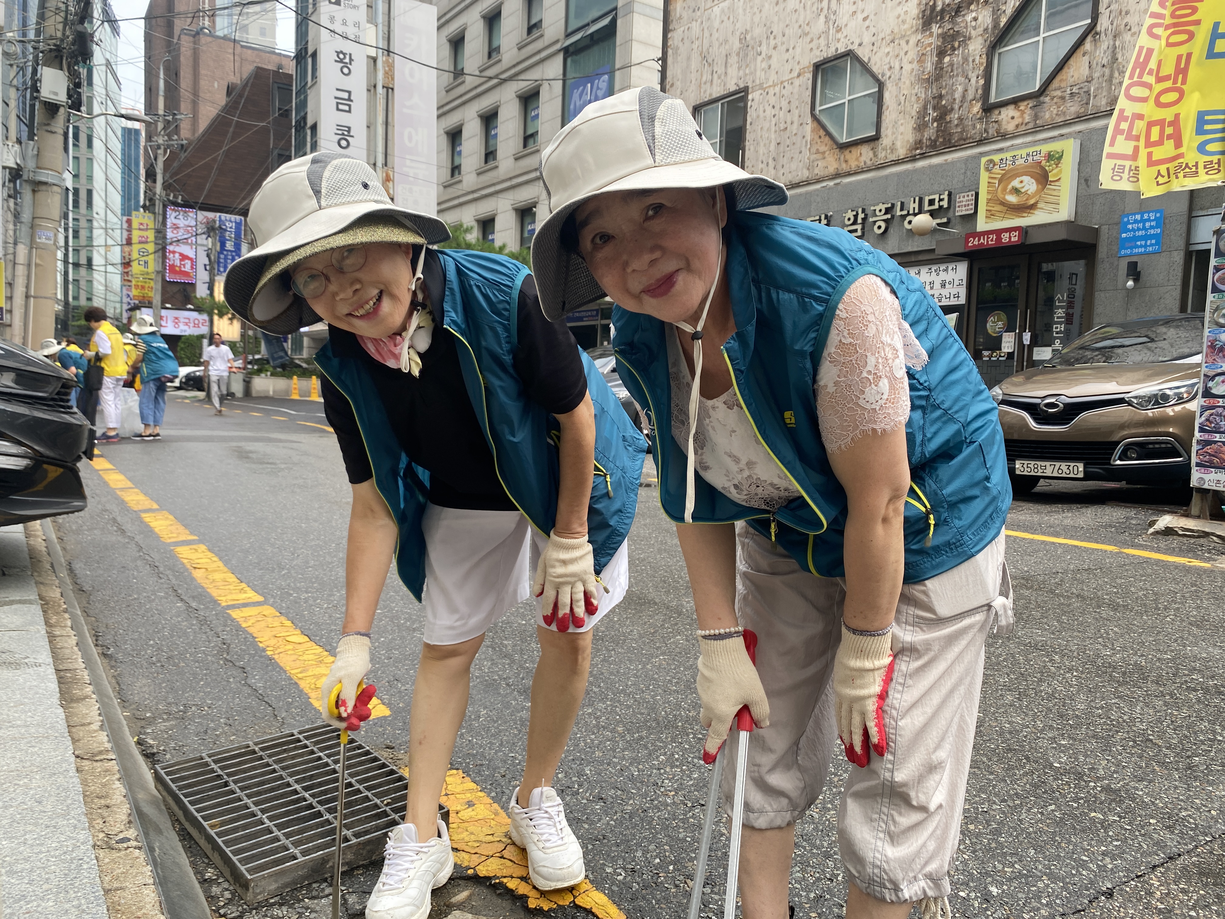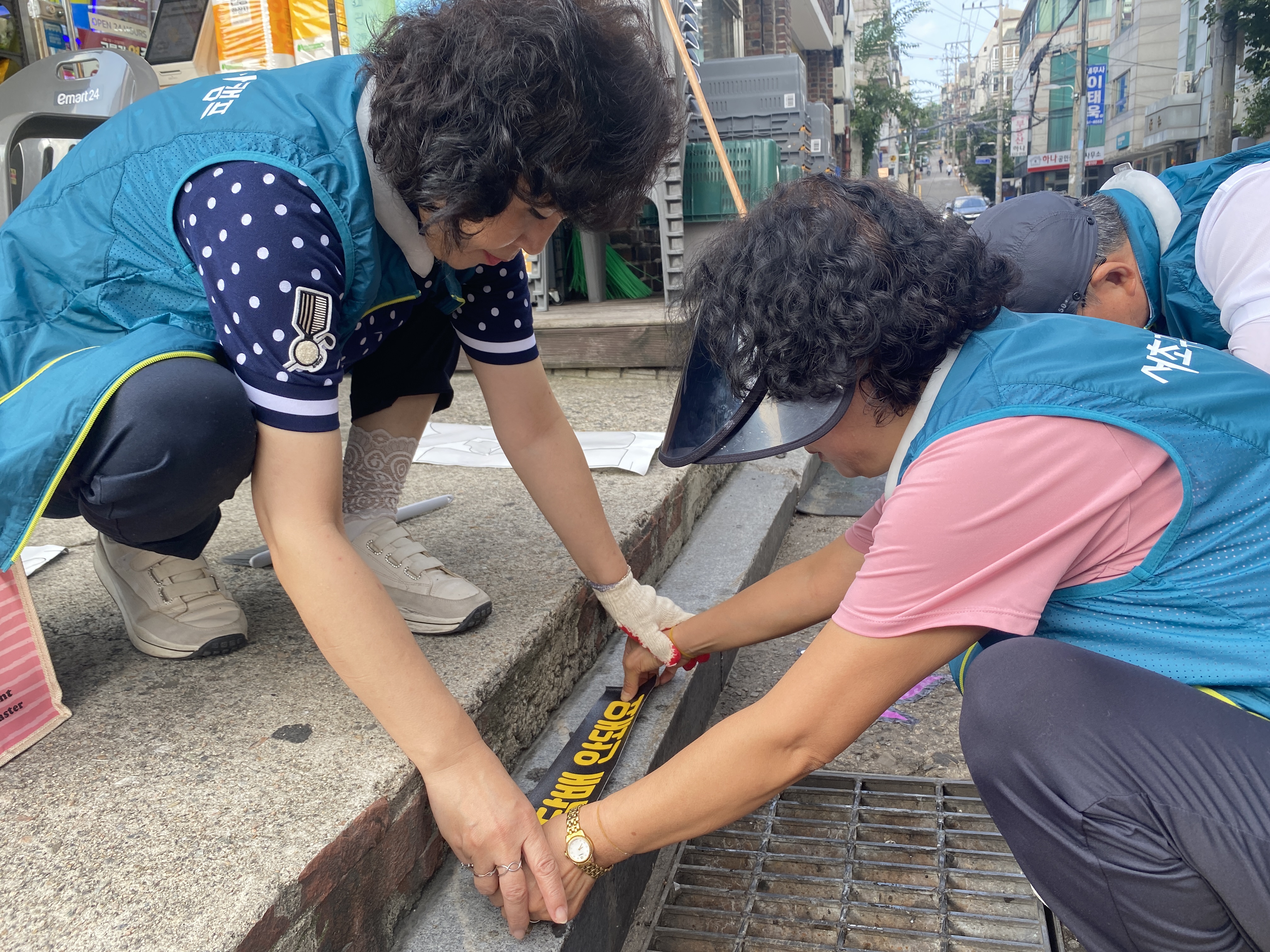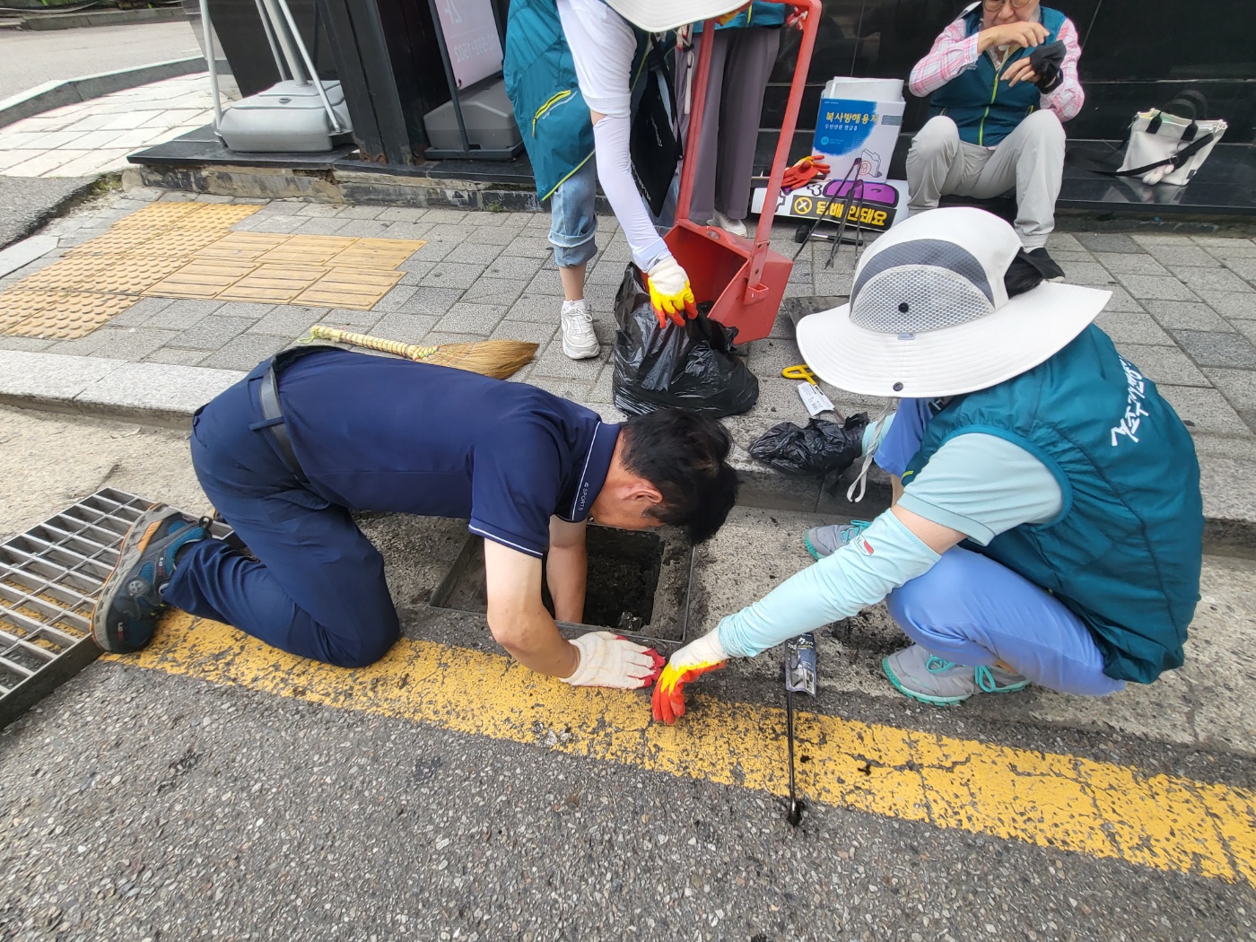 따라서 서초2동 자원봉사캠프에서는 이 빗물받이를 정화하고 담배꽁초를 버리지 말자는 스티커를 부착하는 캠페인을 기획했다고 합니다. 36도에 육박하는 매우 무더운 날씨였음에도 불구하고, 캠페인에 참여하기 위해 캠프장님을 비롯한 많은 자원봉사자분들께서 나와주셨습니다.