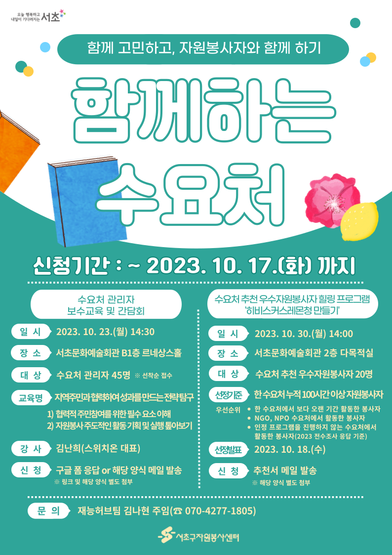 2023 서초V페스티벌 우수봉사자(단) 및 관리자 추천 공고 (0) | 2023.09.13 |