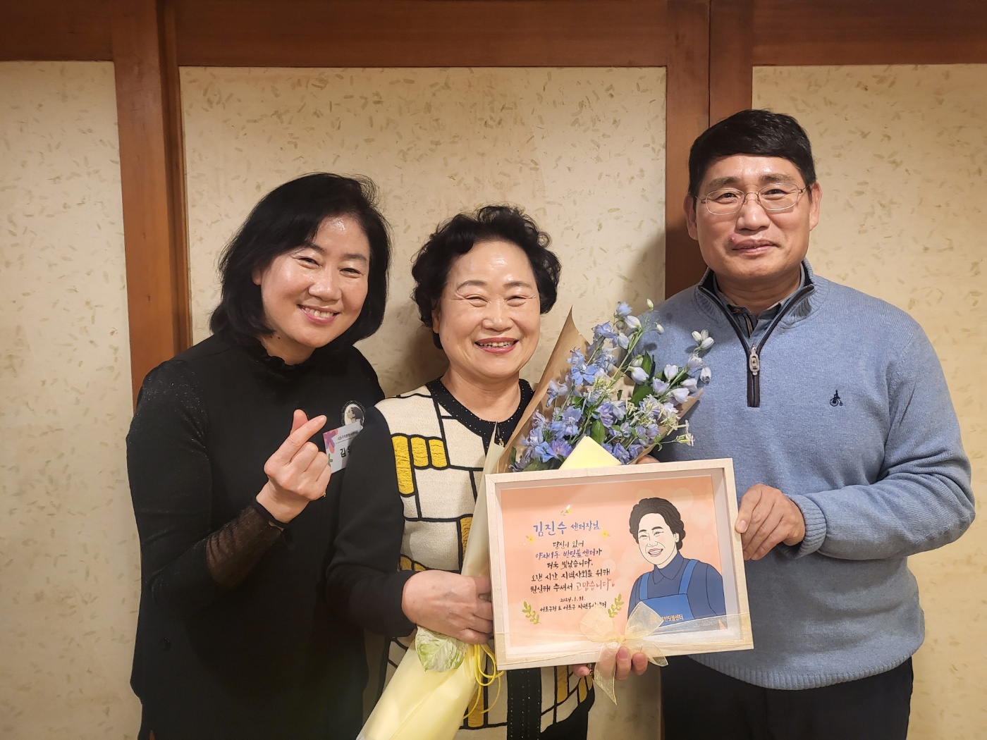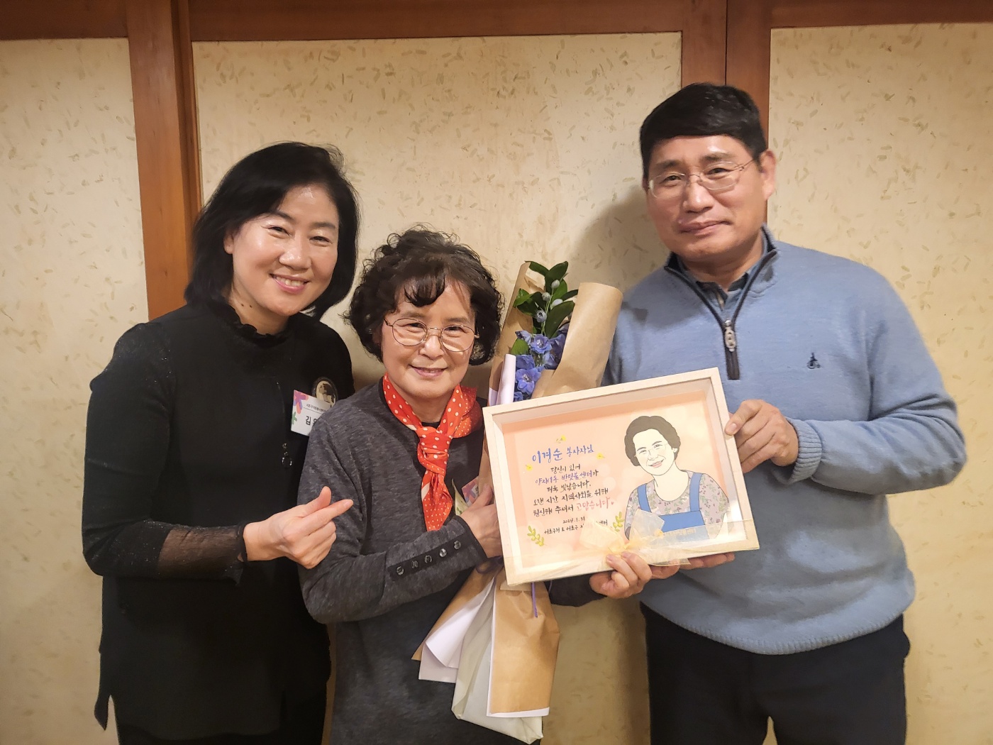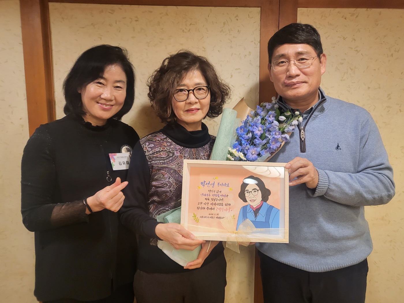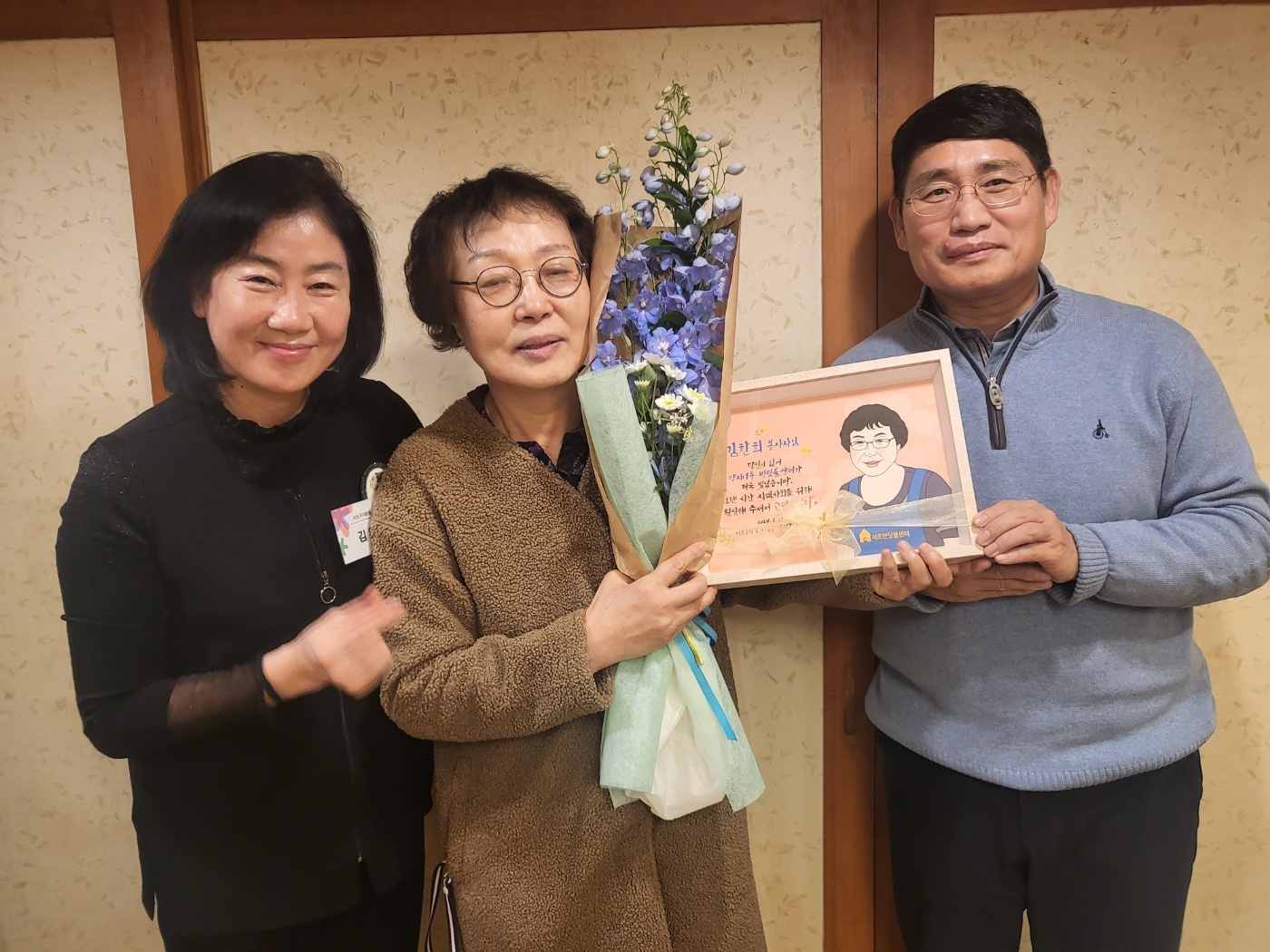 서초구자원봉사센터 김유미 센터장님께서 꽃다발을 전달해 주시며