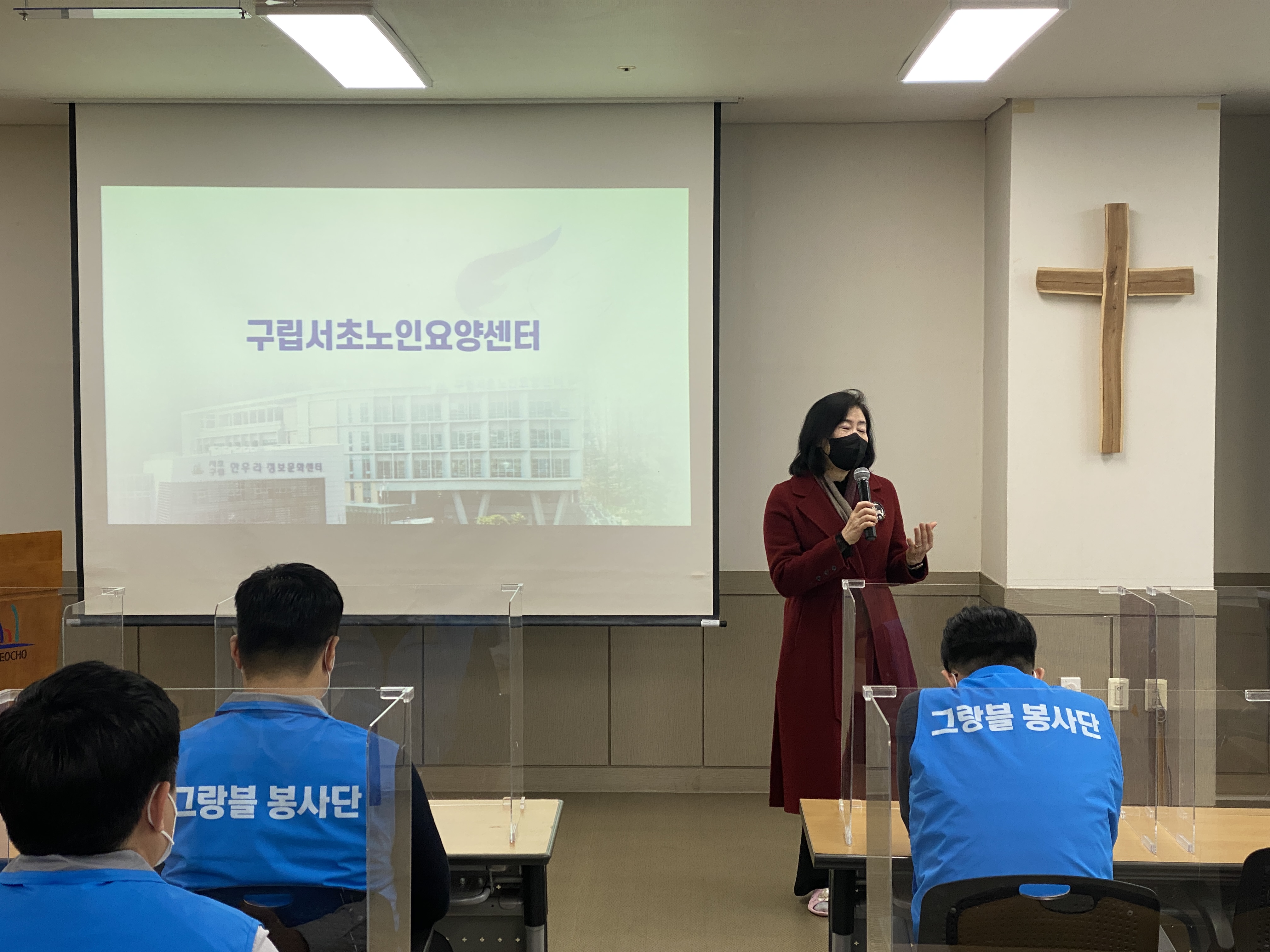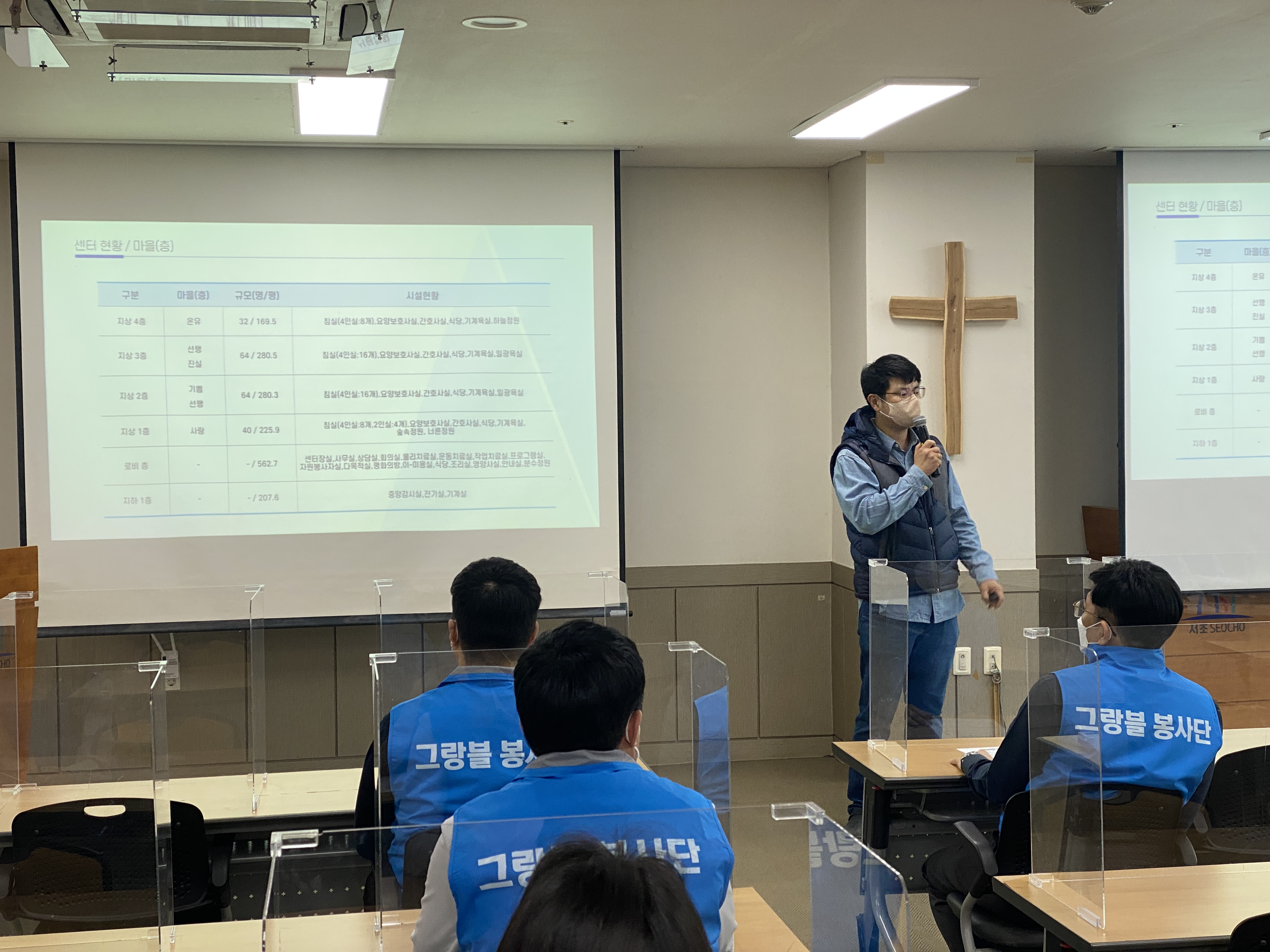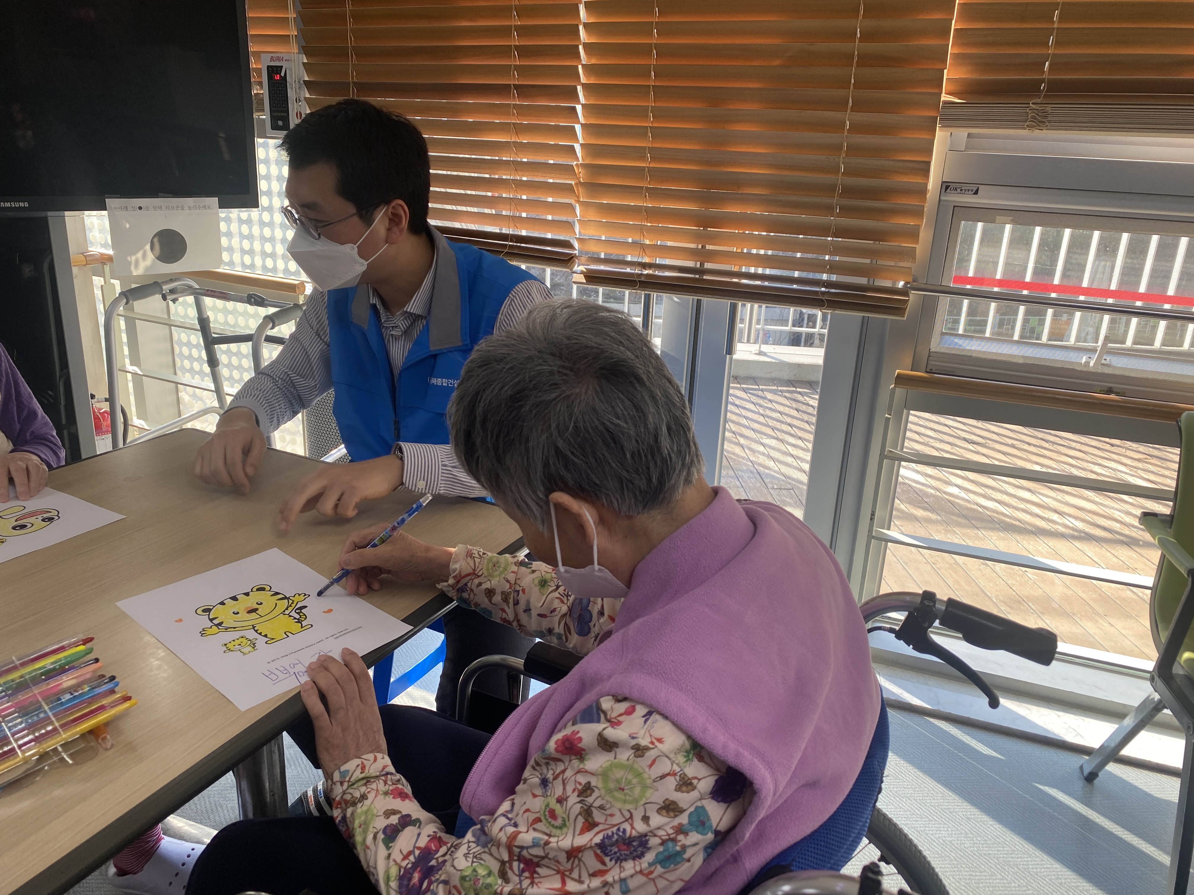 활동을 위해 우선 코로나자가키트 검사와 마스크를 착용하여 어르신들과 만날 준비를 하신 임직원들에게 원활한 활동이 될 수 있도록 준수 사항 안내와 입주 어르신과 무엇을 해야할 지 업무분장을 가지는 시간을 가졌습니다.