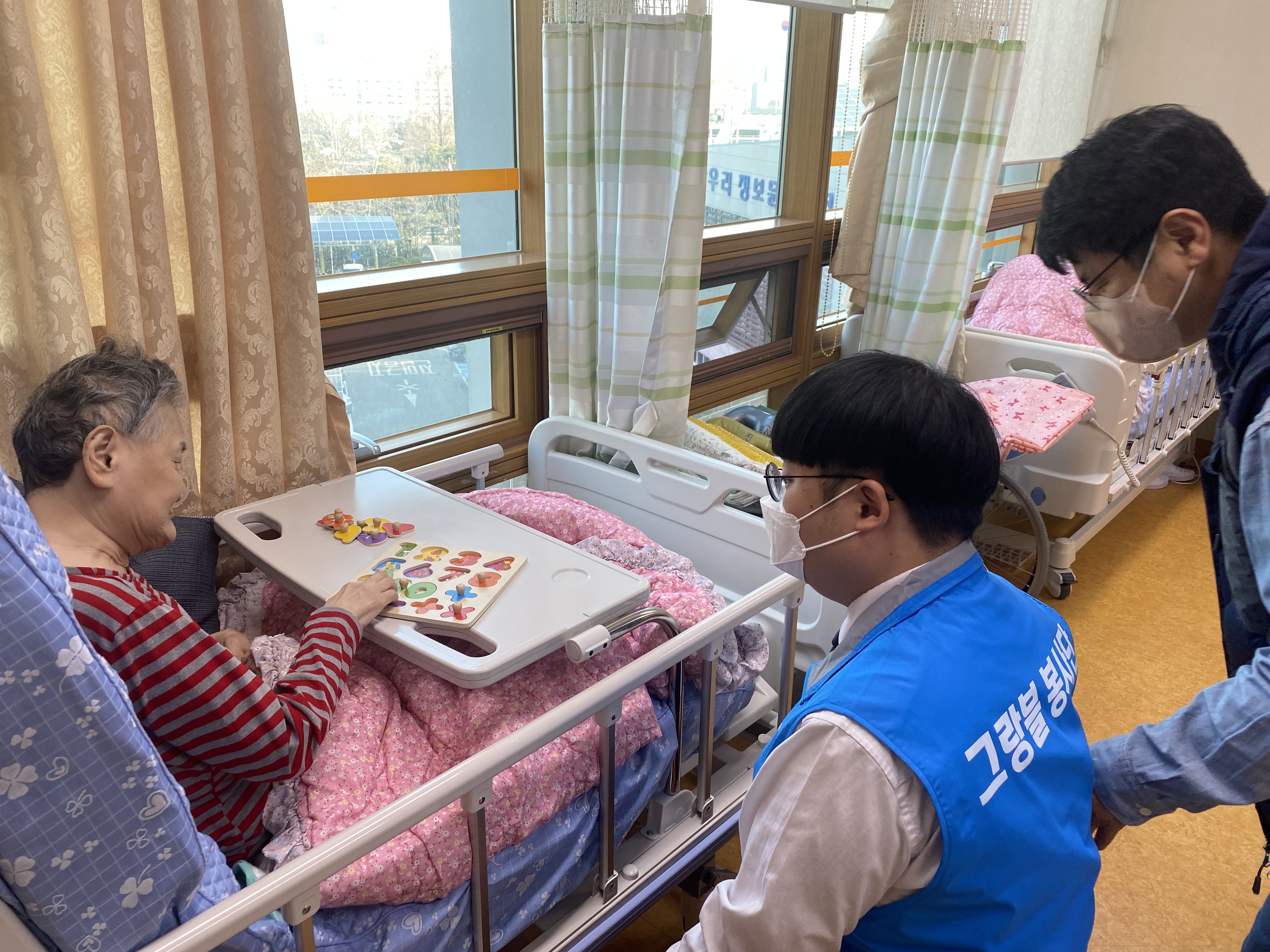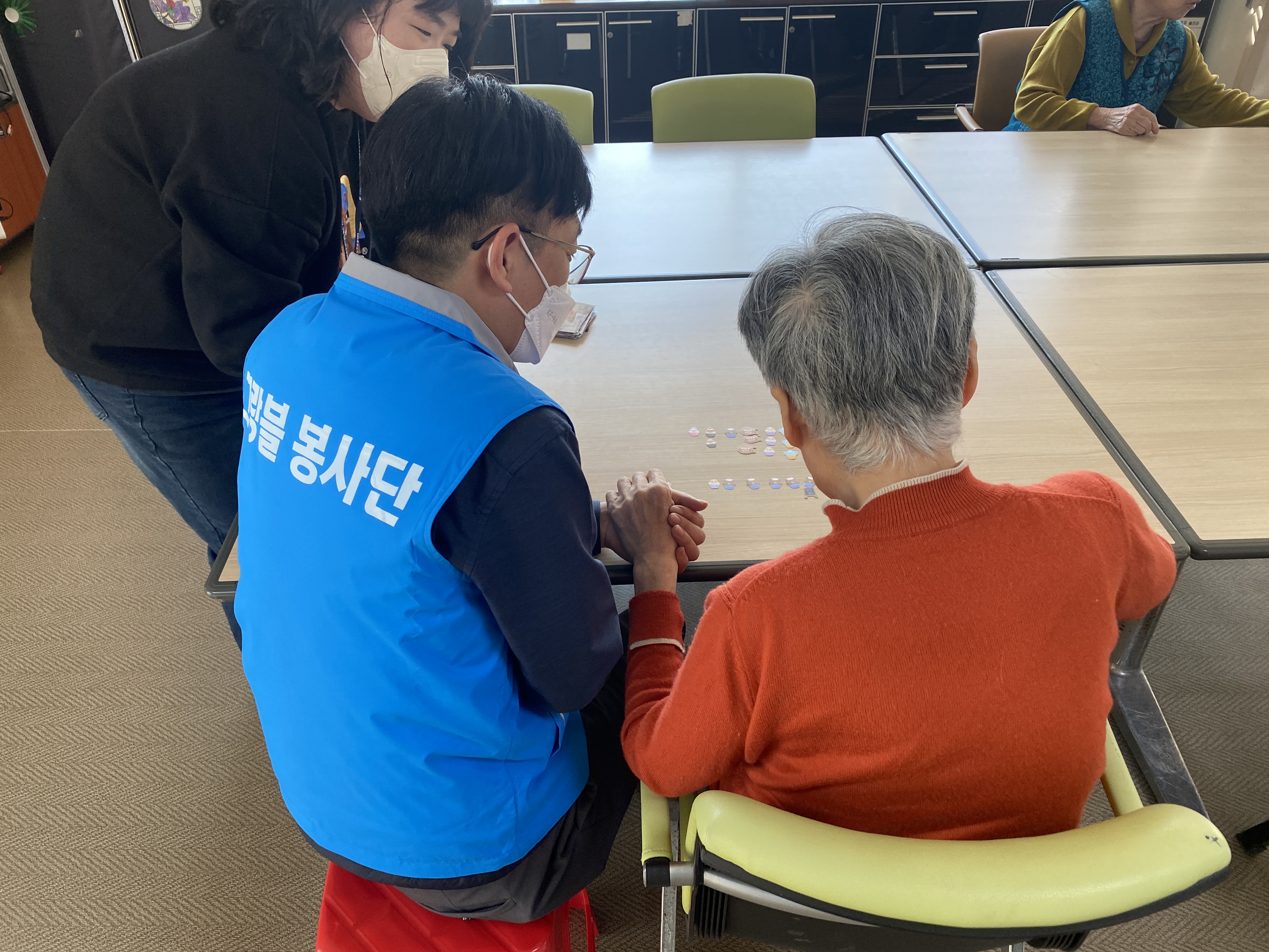 활동이 종료되었지만 그새 정이 들었는지 어르신께서는 가지 말라고 한 임직원분의 손을 꼭 잡아주셨는데요.