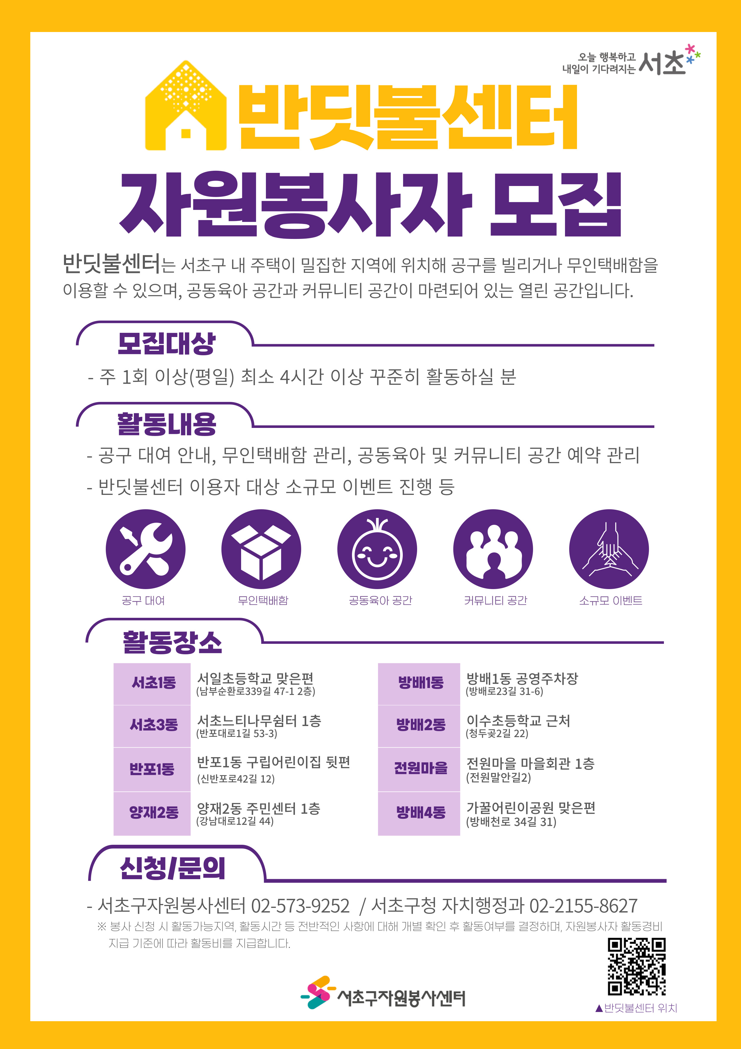 | [공고]2024년 건강한 이웃 관계 회복 프로젝트 '서초구 이웃봉사단 지원사업' (0) | 2024.03.04 |