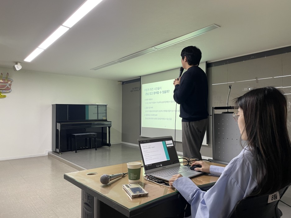 두 팀으로 나누어 봉사활동의 의미를 나누는 공감과 이슈 세션을 진행한 뒤 실습을 진행하였습니다.