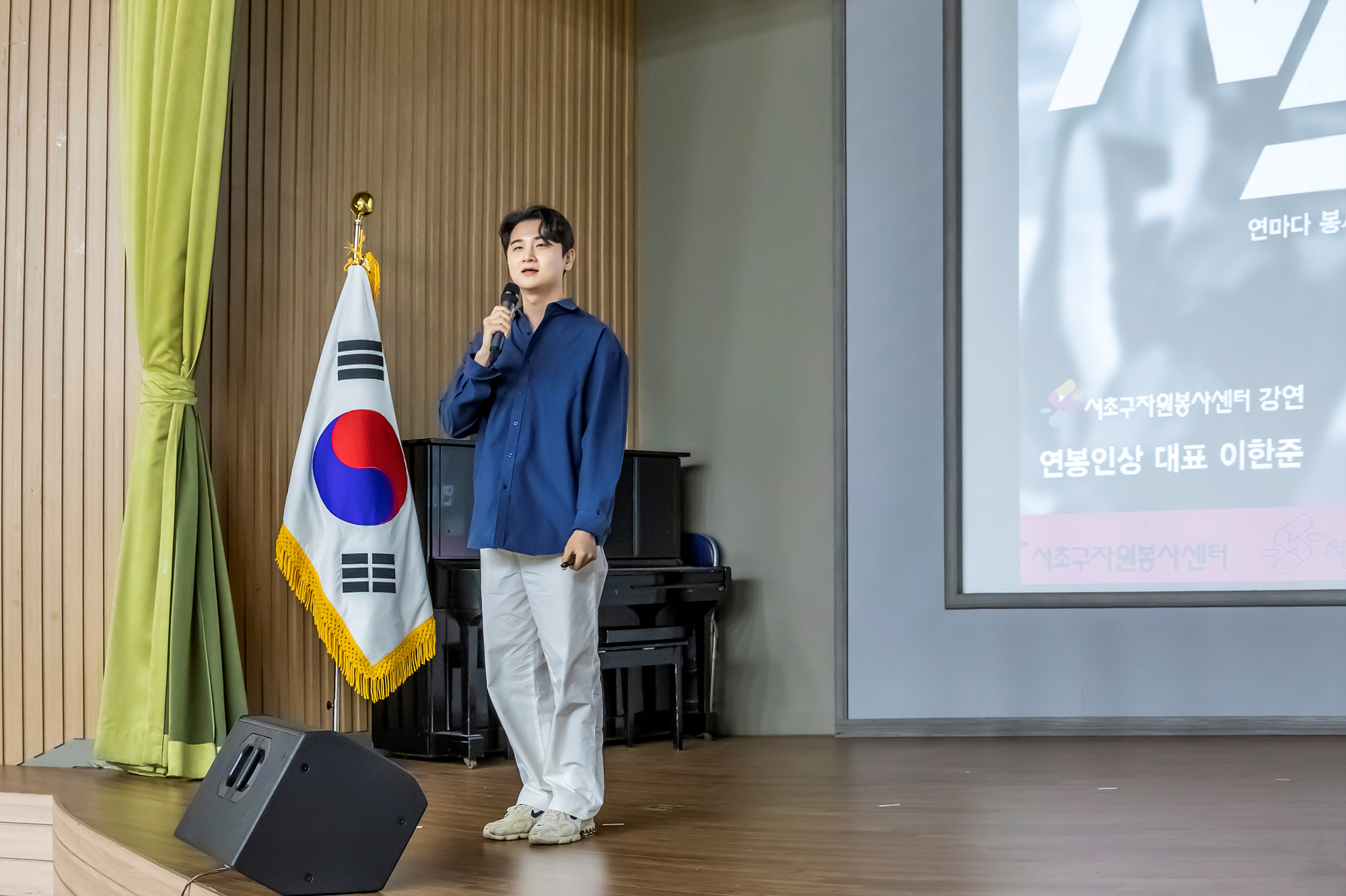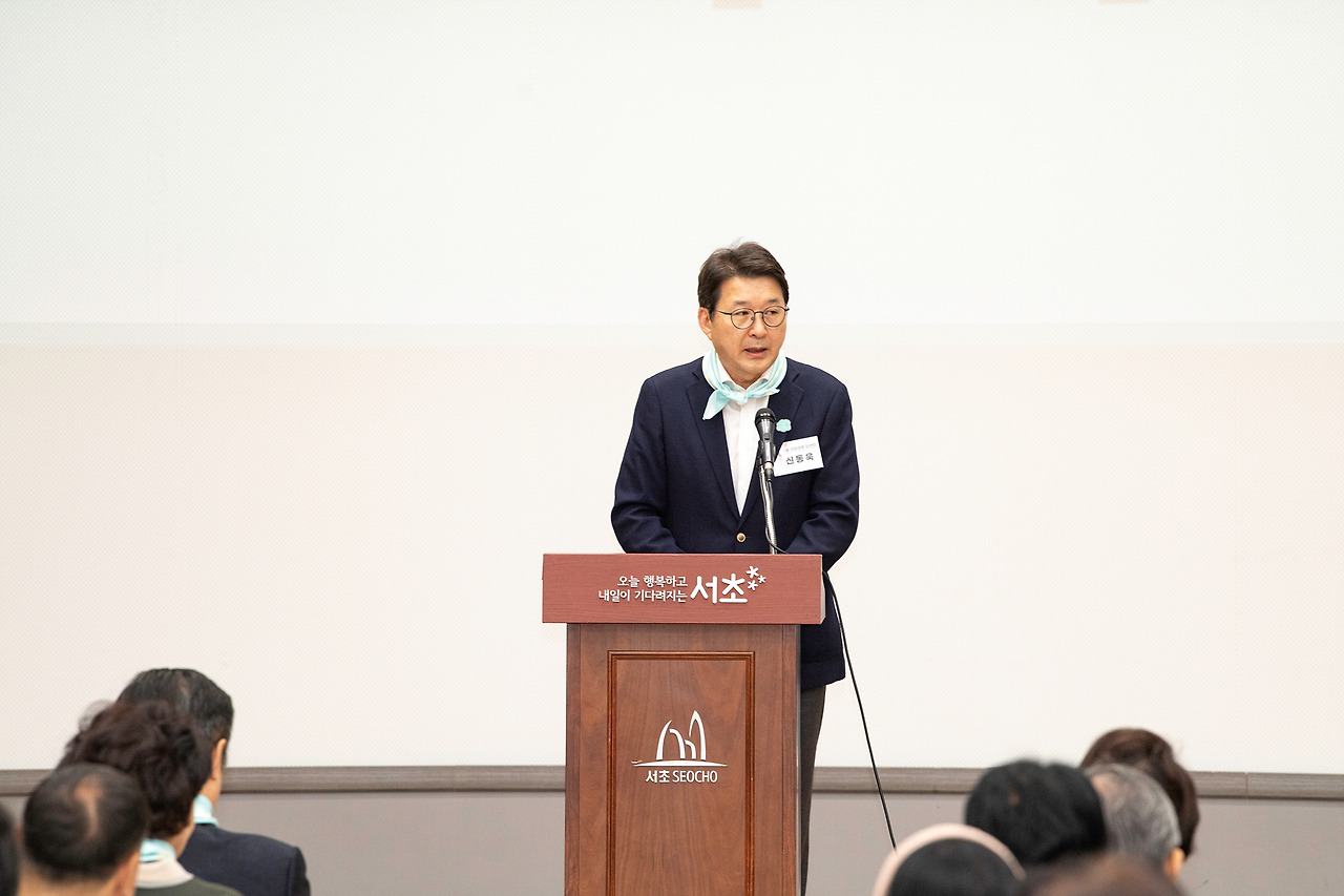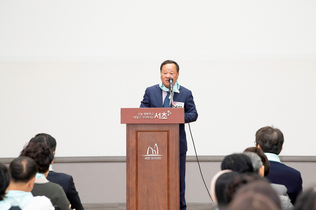 이어서 새로운 자원봉사자들을 환대하는 영상과 내빈 소개가 이어지면서 본격적으로 축제가 화려하게 시작되었습니다. 미생으로도 유명한 배우 성병숙님이 오늘 행사의 사회를 맡아주셨고 신동욱 서초을 국회의원 당선인님과 오세철 서초구의장님, 그리고 전성수 서초구청장님의 축사가 있었습니다.