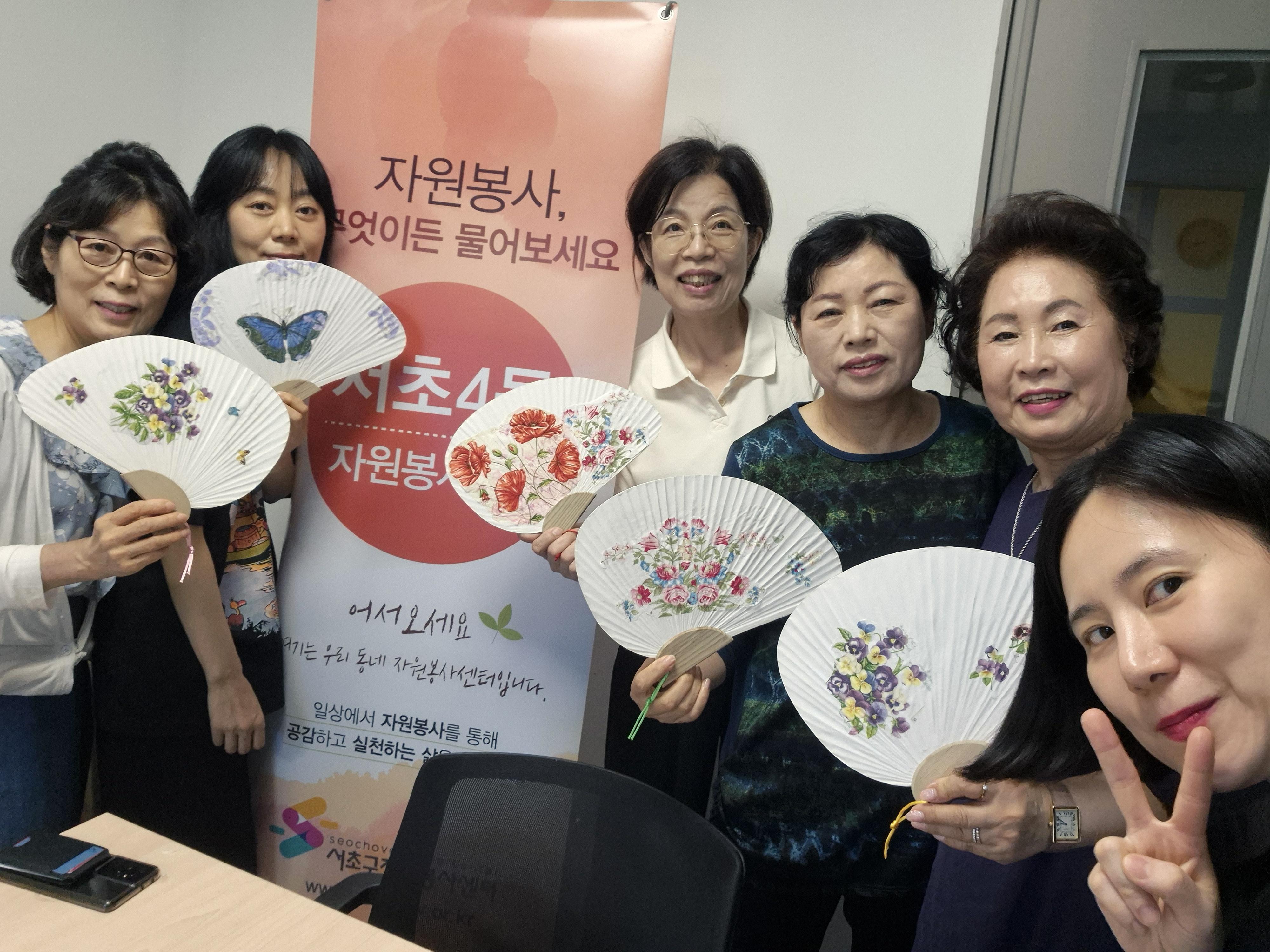 새내기 봉사자 첫 활동으로 서초4동 자원봉사캠프에서 '여름나기 부채 만들기'가 진행되어 그 현장을 다녀왔습니다.