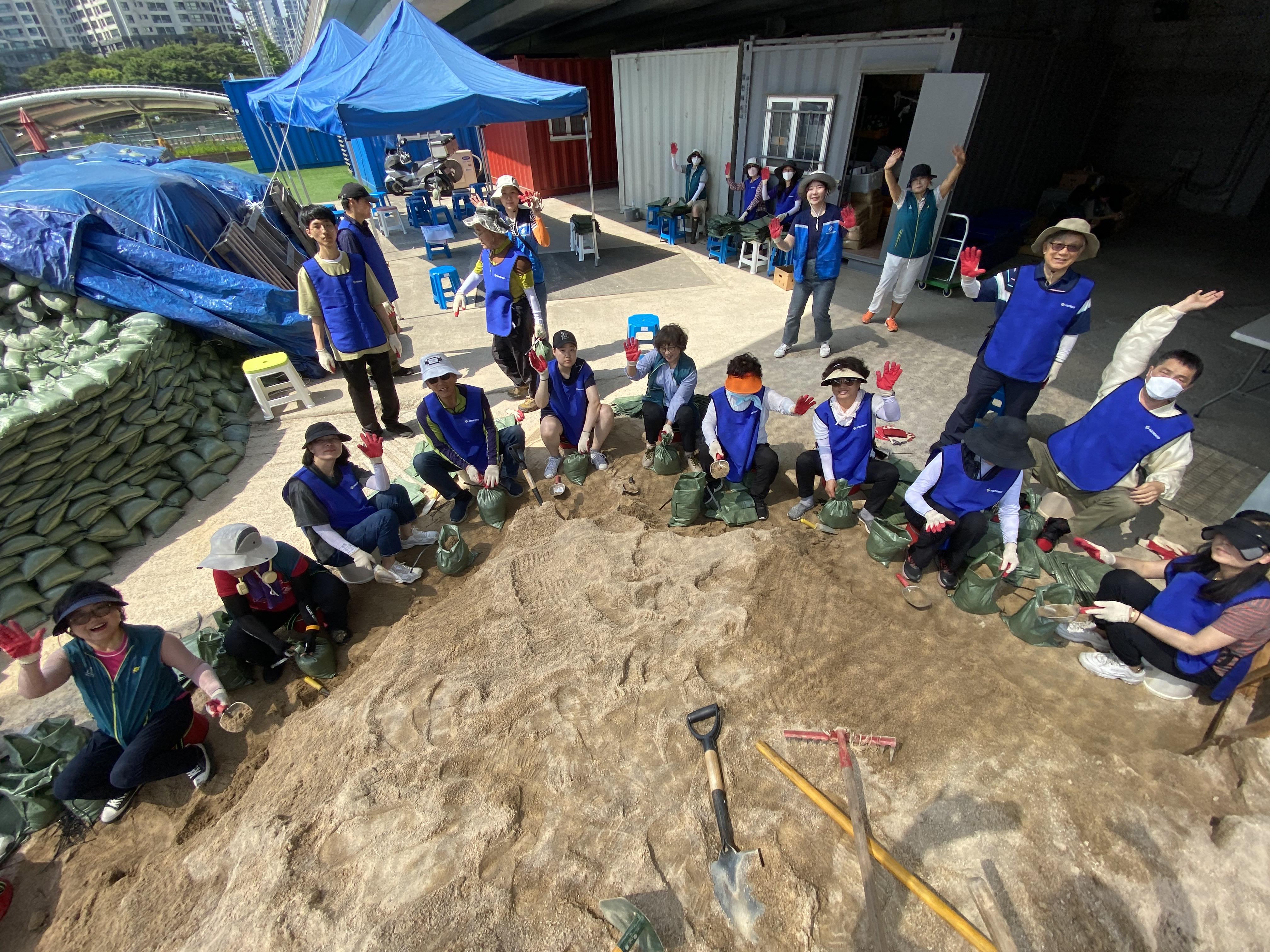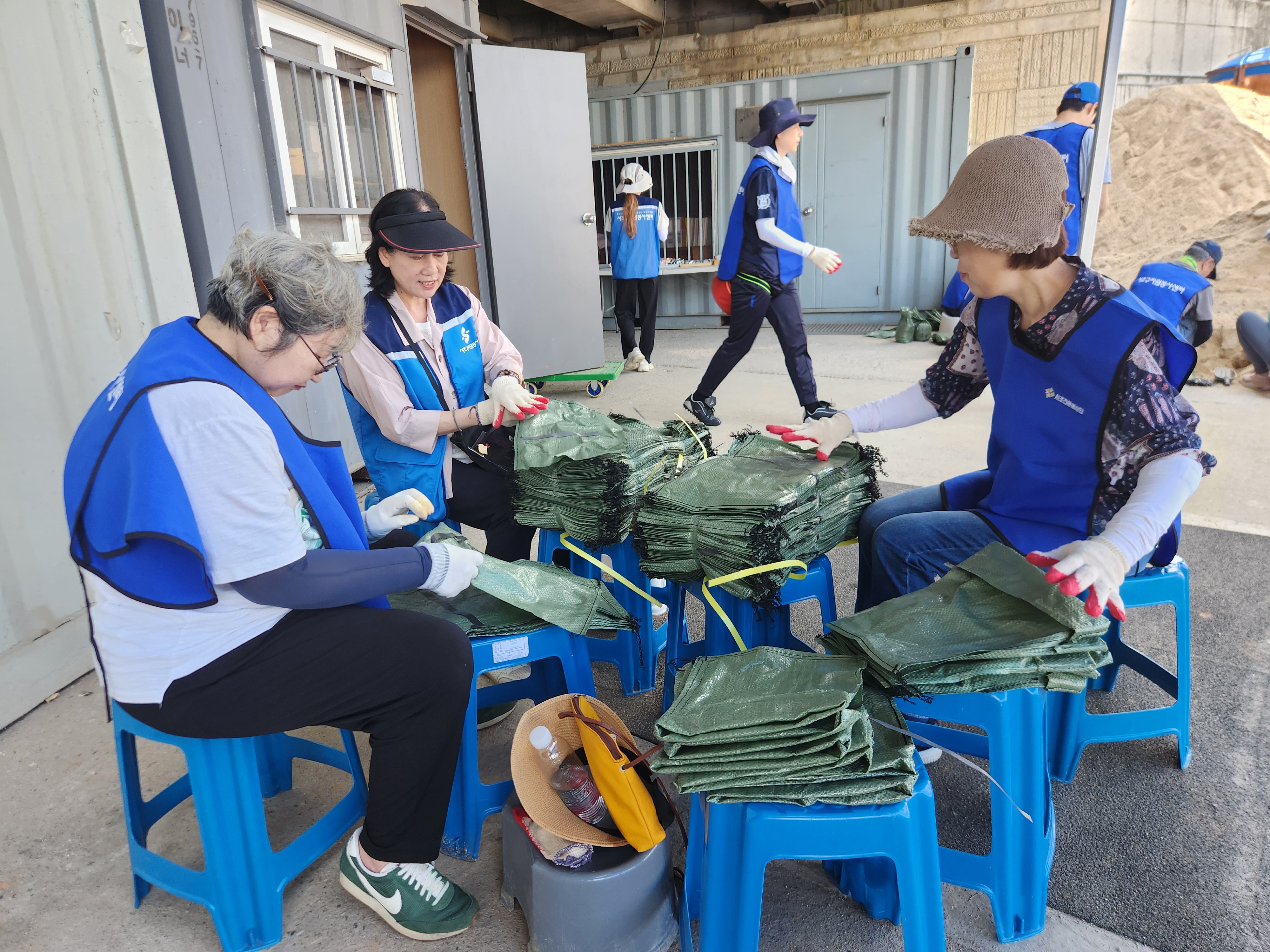 더운 날씨에도 자원봉사자분들께서는 열심히 모래주머니를 만드셨습니다.