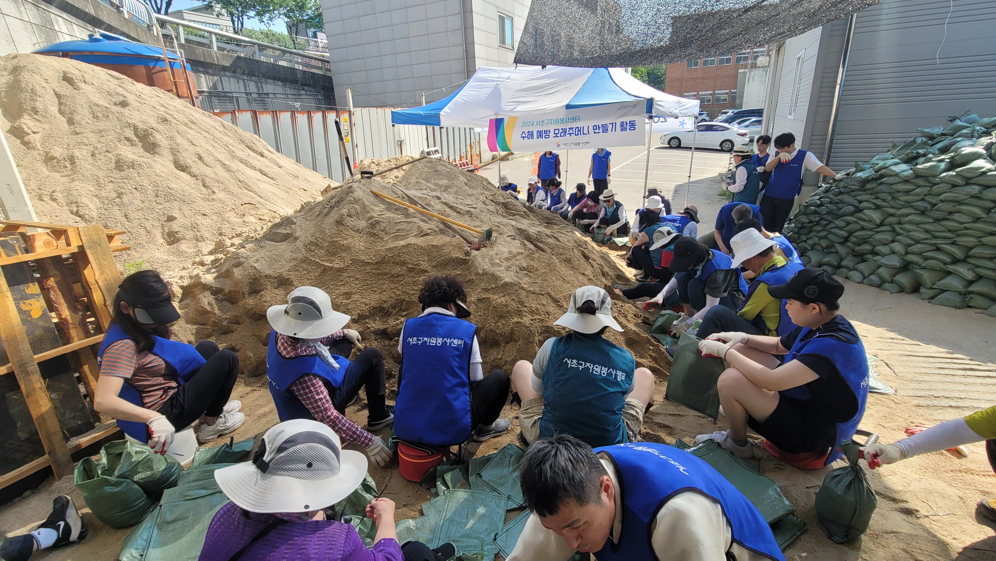 이날 만들어진 모래주머니는 총 3,700개로 서초구 18개 동 및 안전 취약 시설에 배포되어 사용됩니다.