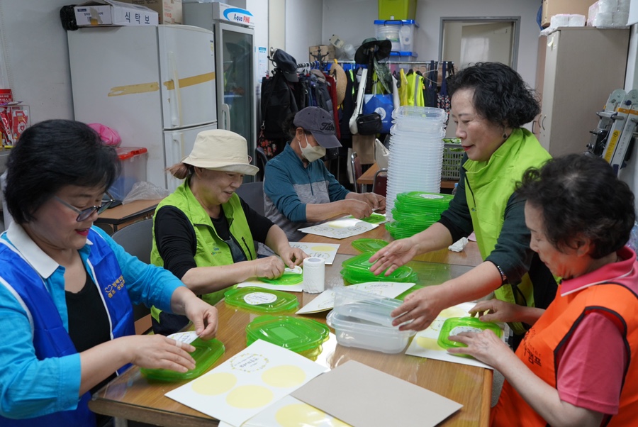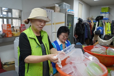 그동안 새내기 봉사자분들은 반찬통을 깨끗이 씻고 물기를 제거하는 작업과