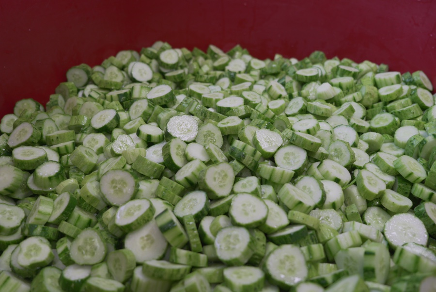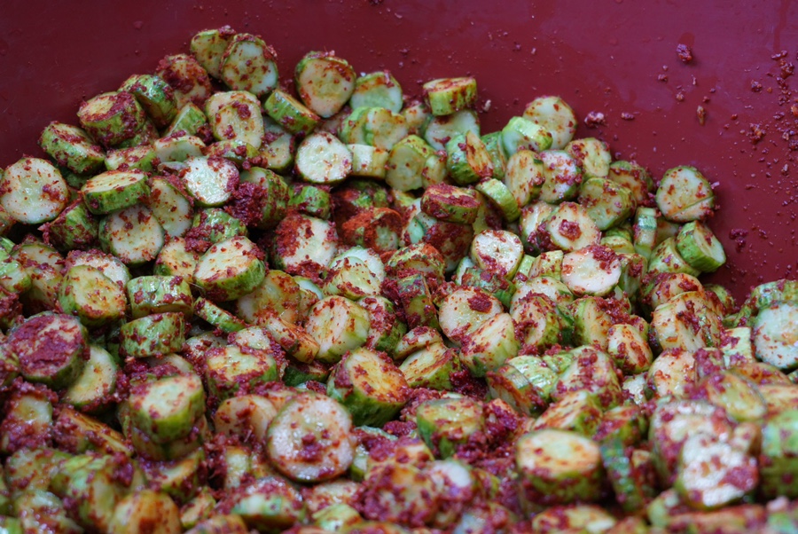 다음으로는 오이에 빨간 옷을 입히는 과정이 진행되었는데요. 빨갛게 물든 오이 너무 맛갈나 보이지않나요!