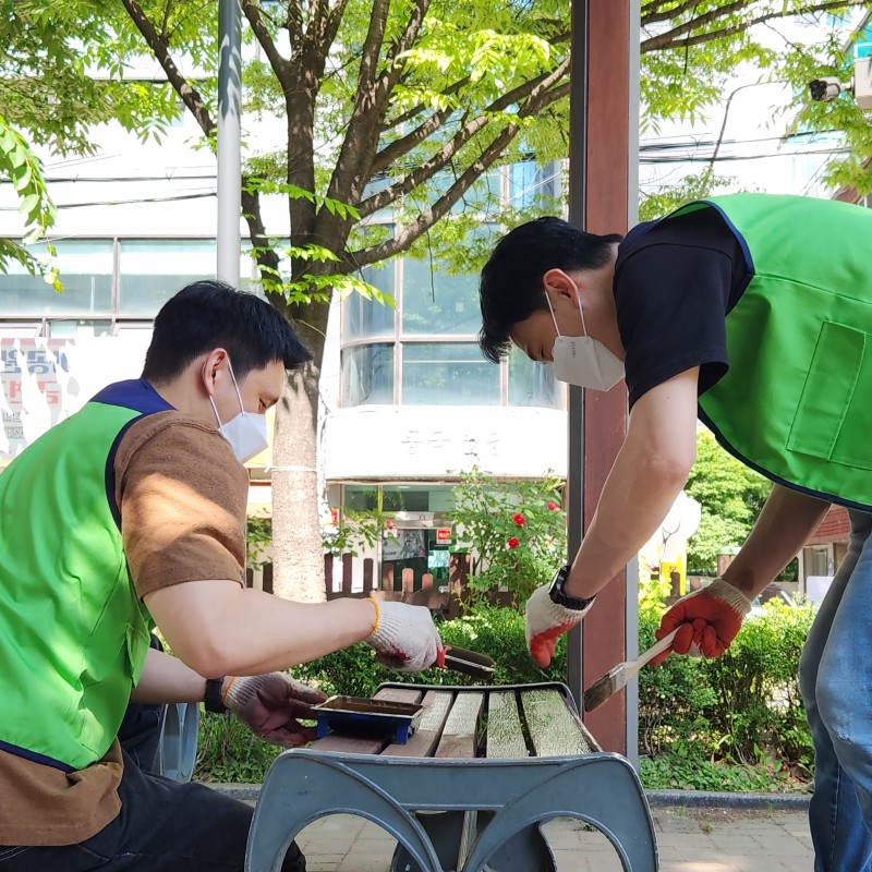 2) 공원 벤치 및 놀이기구 보수 (오일스테인 칠하기)