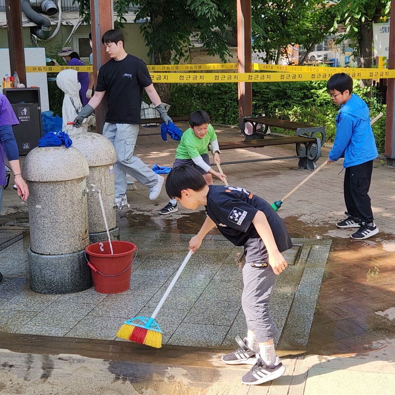 활동의 마지막은 다같이 쓰레기를 줍고 공원 전체를 청소 및 소독하는 작업을 했습니다. 이렇게 열심히 청소를 하던 와중 깜짝 도우미가 나타났는데요!