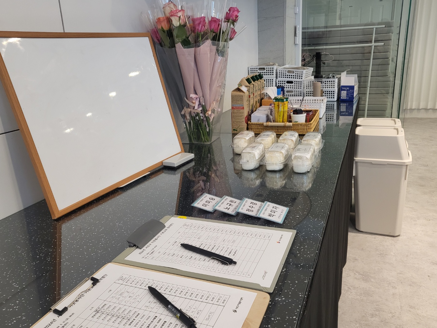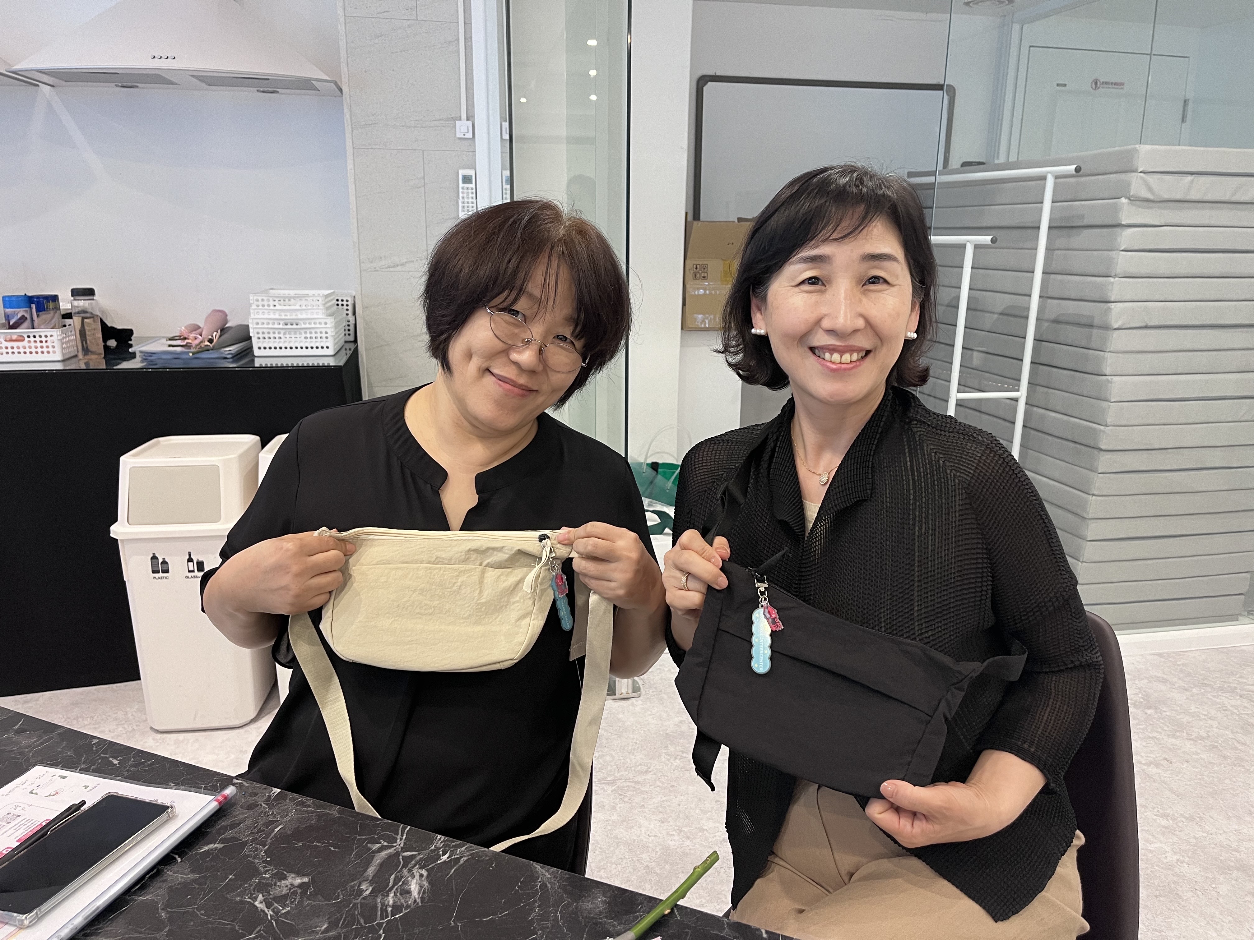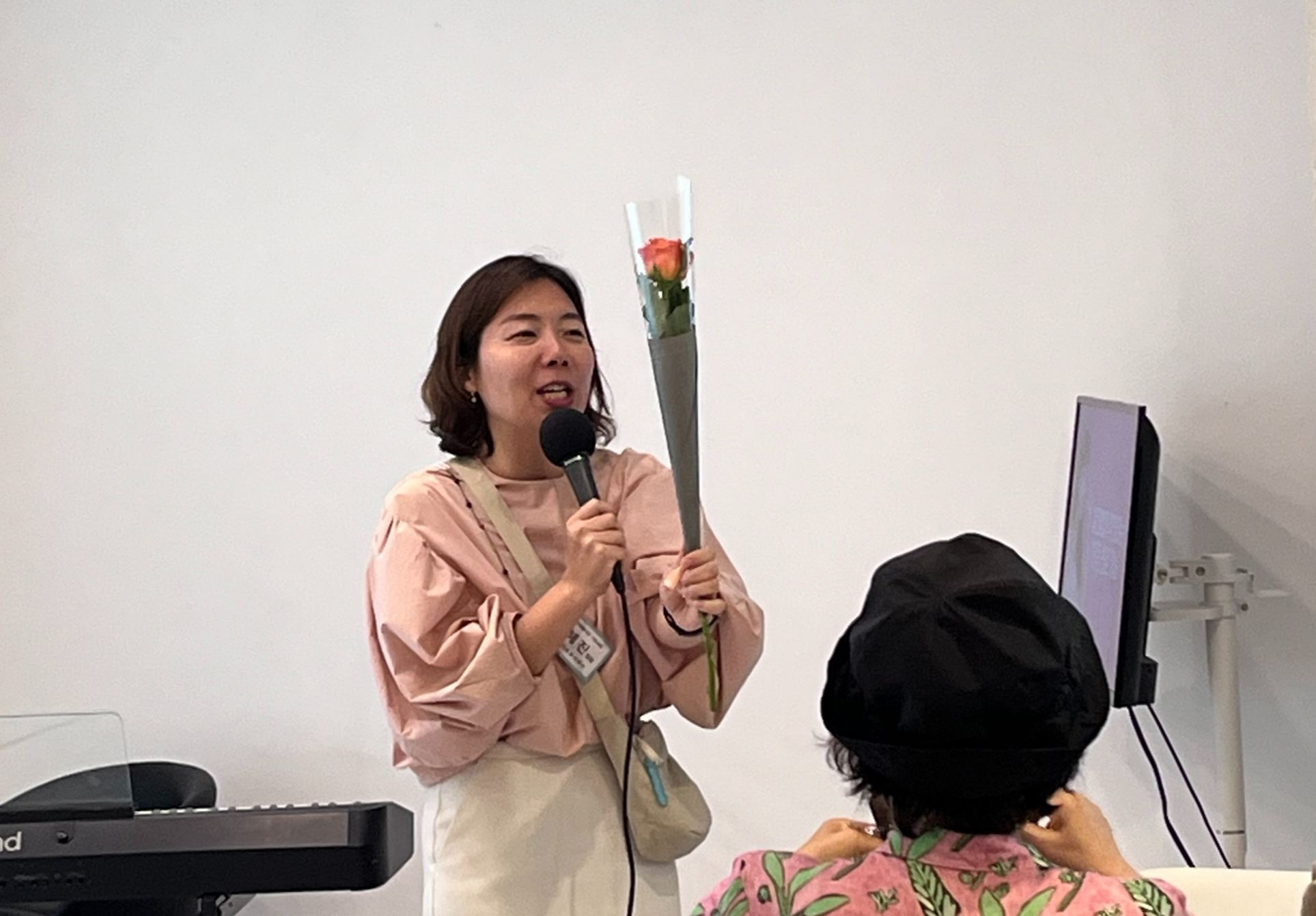 서로 꽃다발과 활동 가방을 나누는 시간을 가졌습니다.