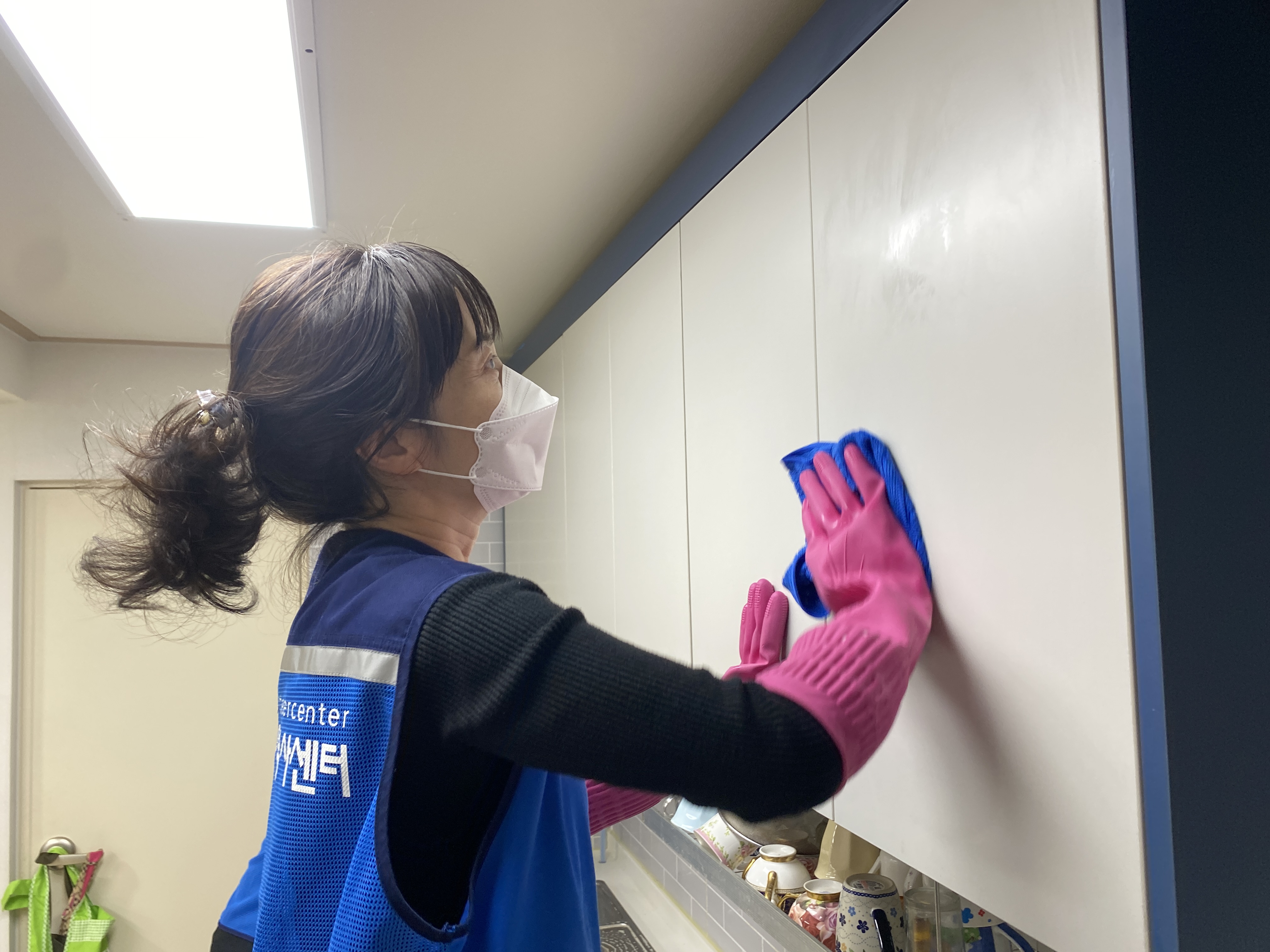 그릇, 찬장 등 부엌의 기름때, 손때도 빠짐없이 소독작업 챡챡!