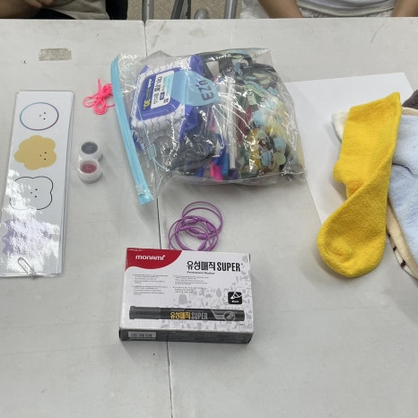 준비물 : 수면양말, 도안, 반짇고리, 솜, 싸인펜, 고리, 인형 눈