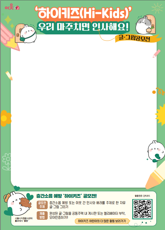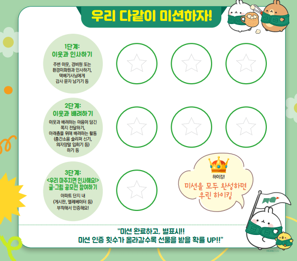어린이들이 살고 있는 공동주택(아파트 단지 등)내에서 활동물품(미션지 및 글·공모전 양식,