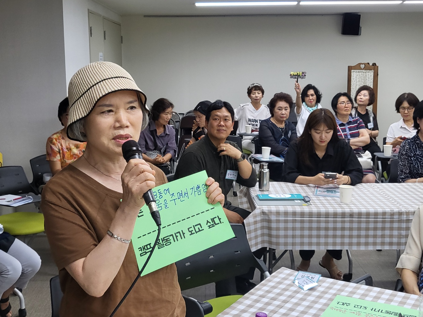 참여한 신규 활동가들이 열정적으로 자신의 의견을 이야기하며