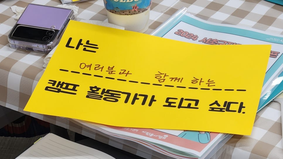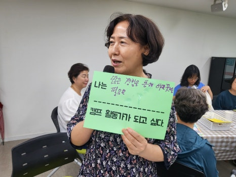 A. 처음엔 무슨 활동인지 잘 모르고 왔지만 교육을 통해 많은 것을 알게 되었습니다. 캠프 활동가로서 더 많은 것을 알고 자원봉사에 참여할 수 있어서 좋은 경험이 될 것 같습니다.