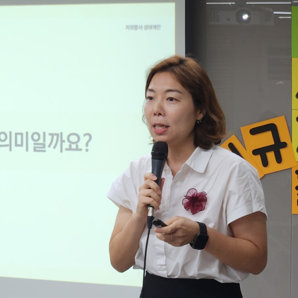 다음 활동으로는 정혜진 팀장님께서 "자원봉사 생태계와 캠프"에 대해 자세히 설명해 주셨습니다.
